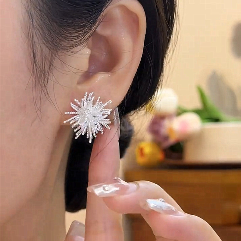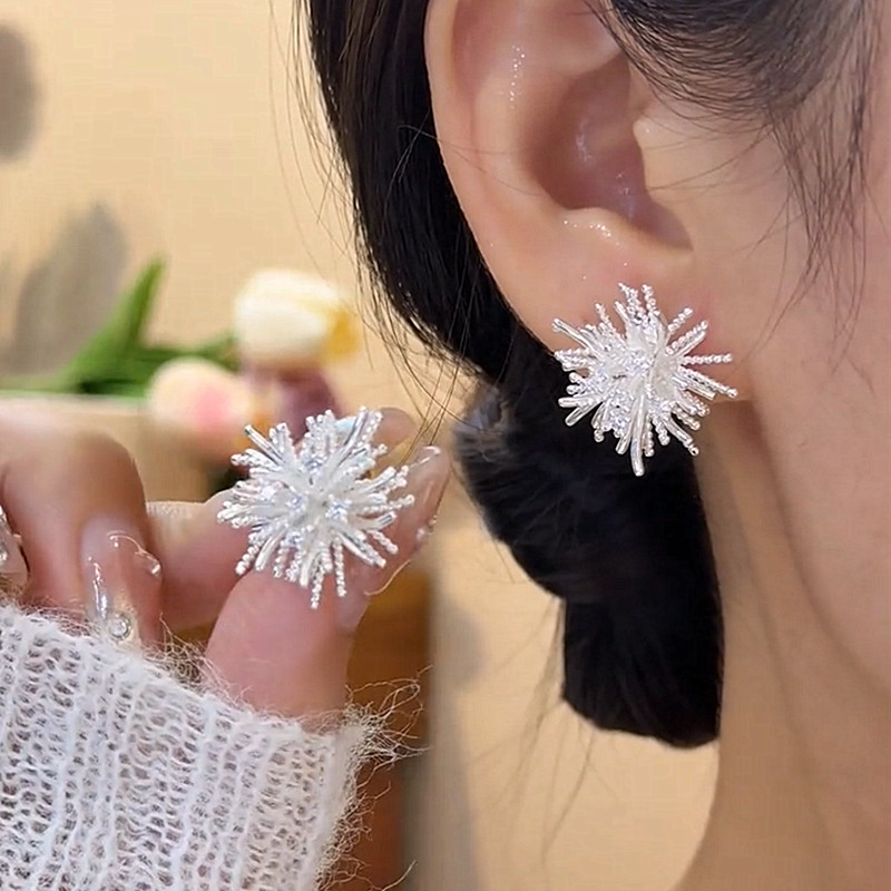 📚 2025新款爆款银色高级感独特烟花S925银针耳钉女耳环夸张小众耳饰