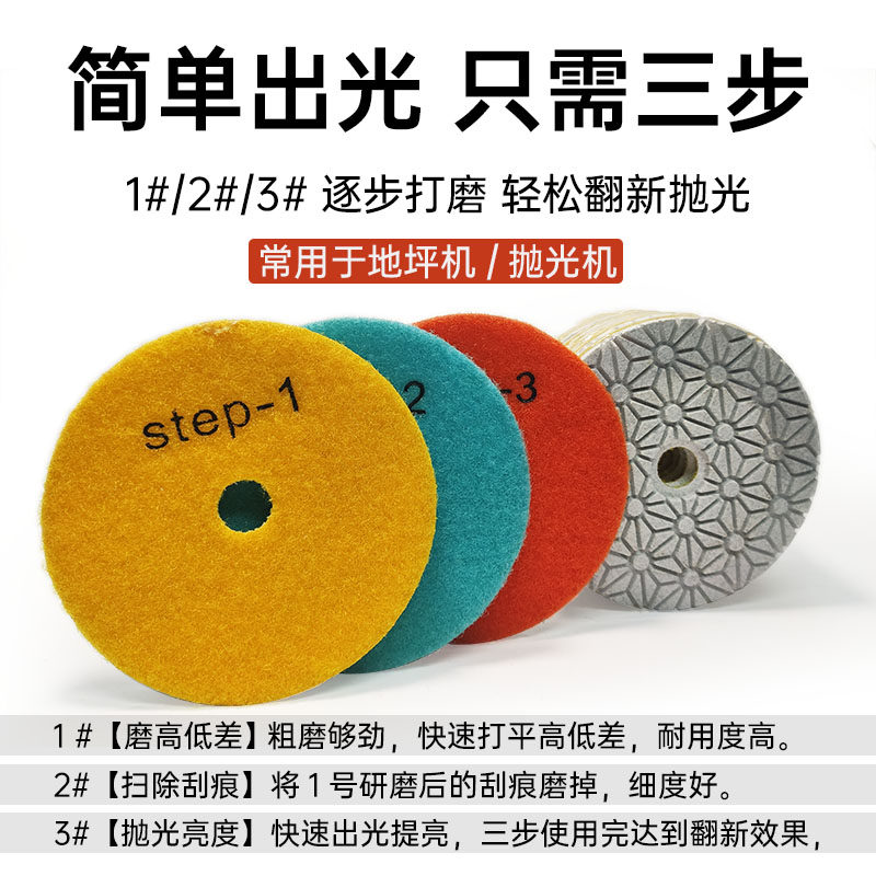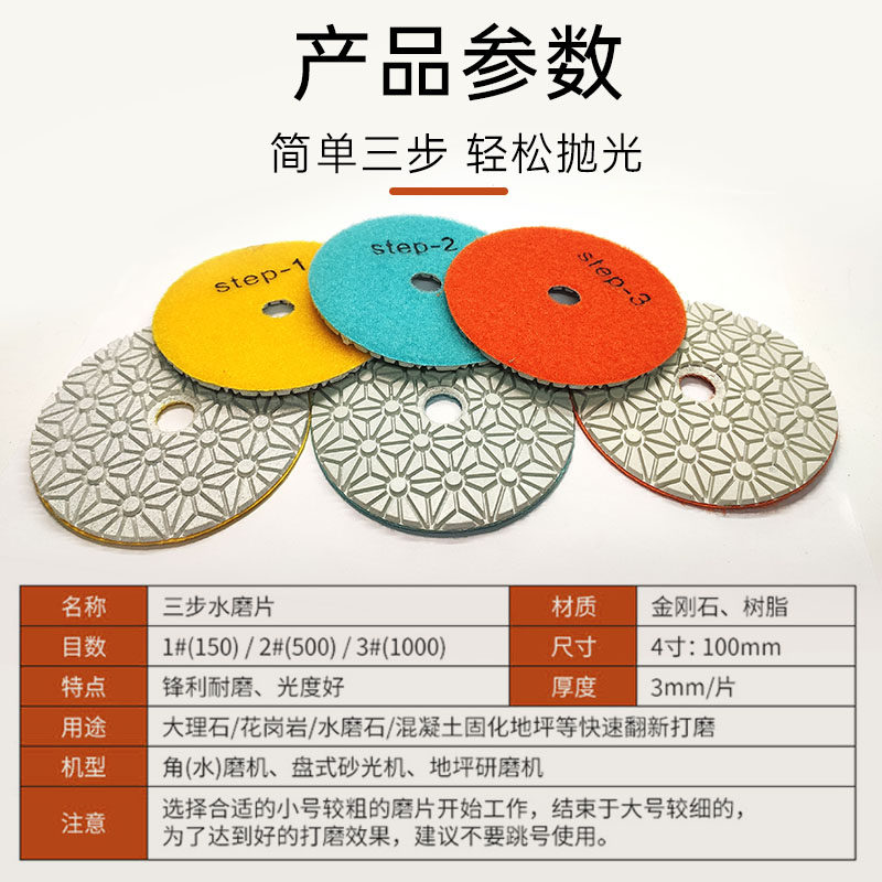 📚 三步水磨片石材抛光片123号快速磨片大理石花岗岩4寸角磨机翻新片