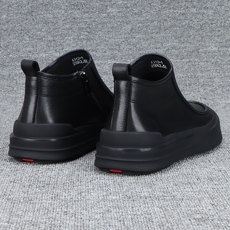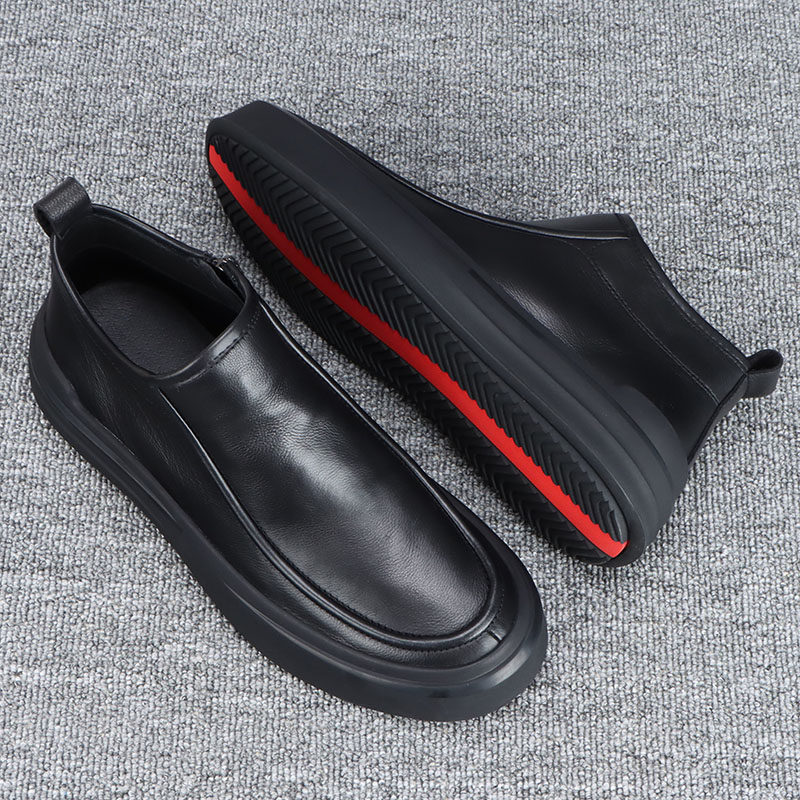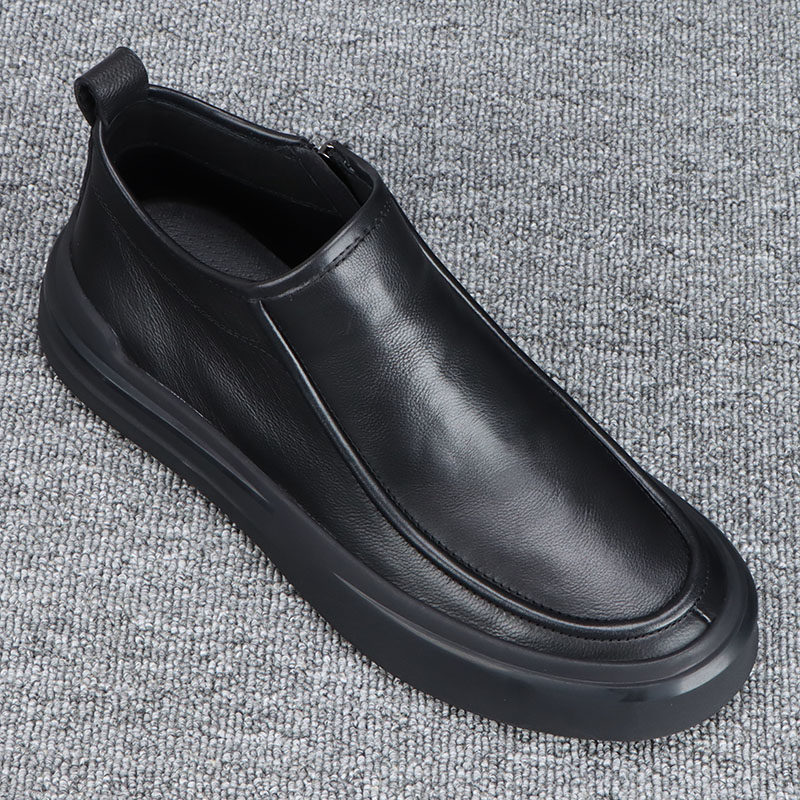 📚 头层牛皮男鞋高帮鞋子男款秋冬款2026新款拉链厚底休闲皮鞋男真皮