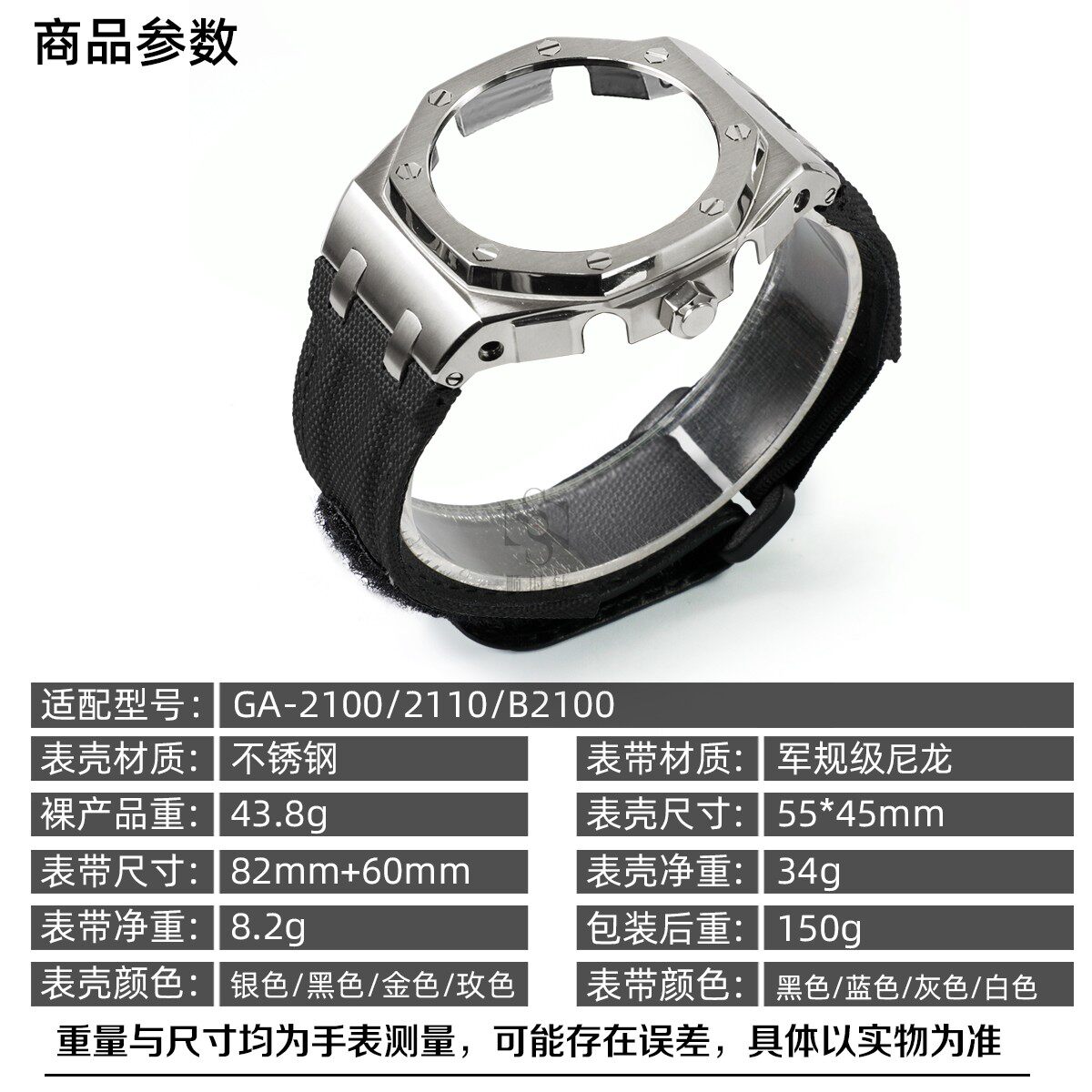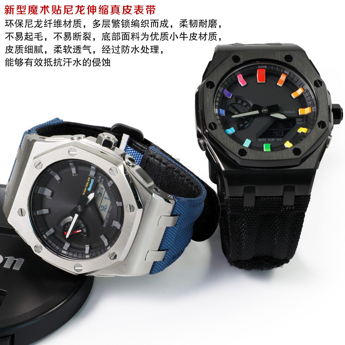 📚 农家橡树GA-2100B2100改装离岸型精钢金属表壳魔术贴尼龙表带配件