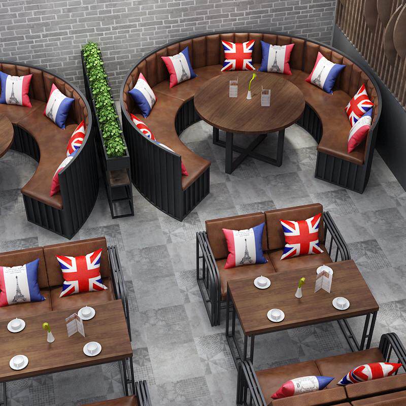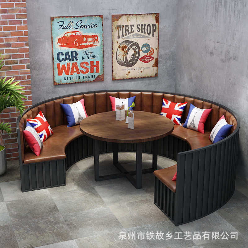 📚 美式复古圆弧形沙发 工业风KTV酒吧沙发卡座火锅店半圆沙发椅组合