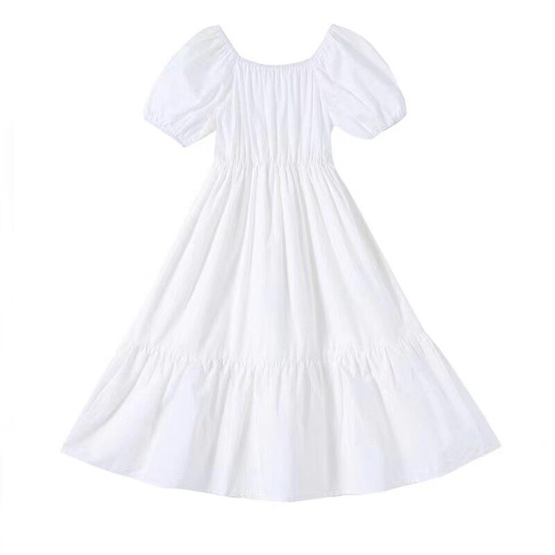 📚 女童白色连衣裙2026夏季新款中大童韩版简约扎染裙子女孩洋气长裙