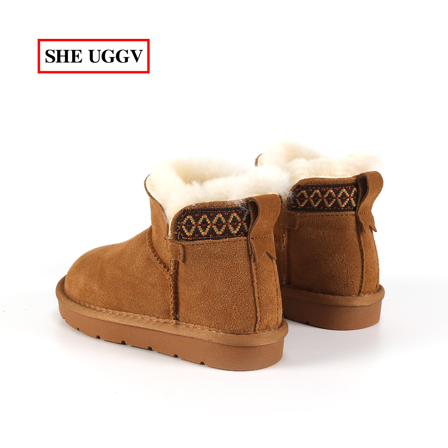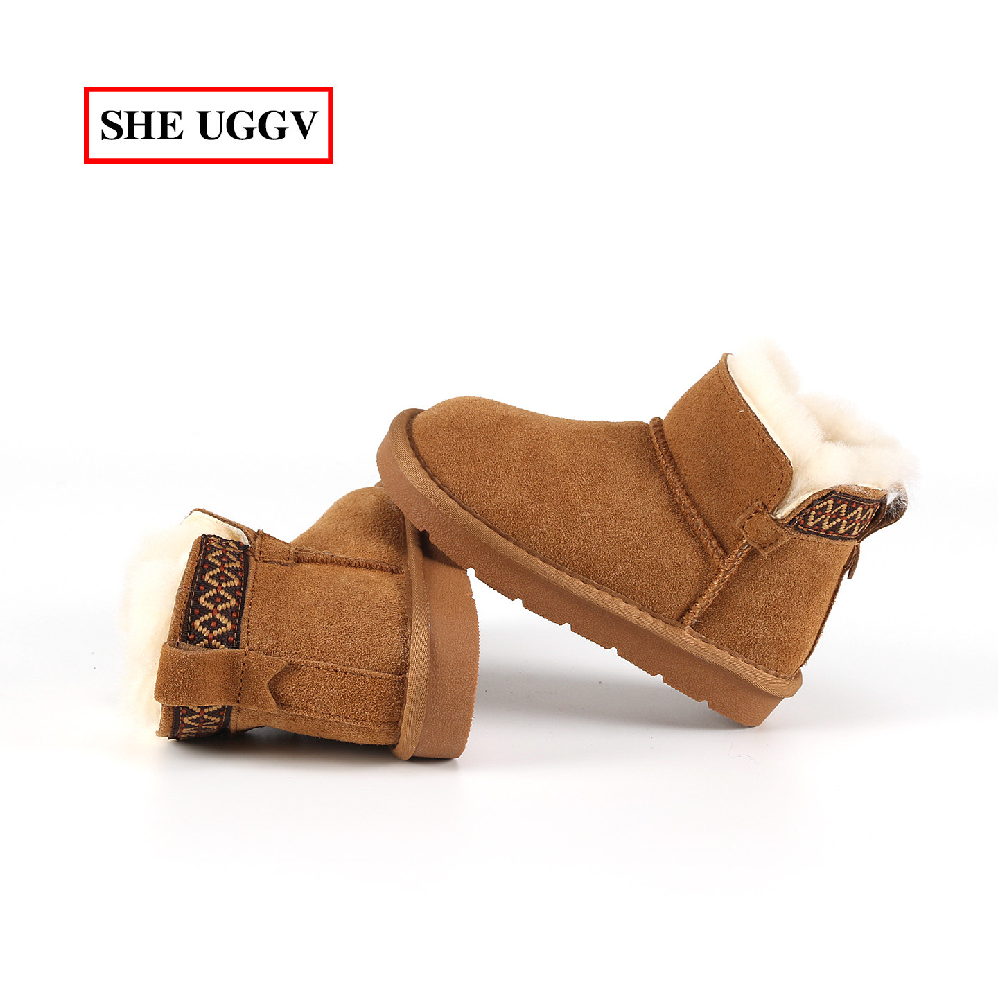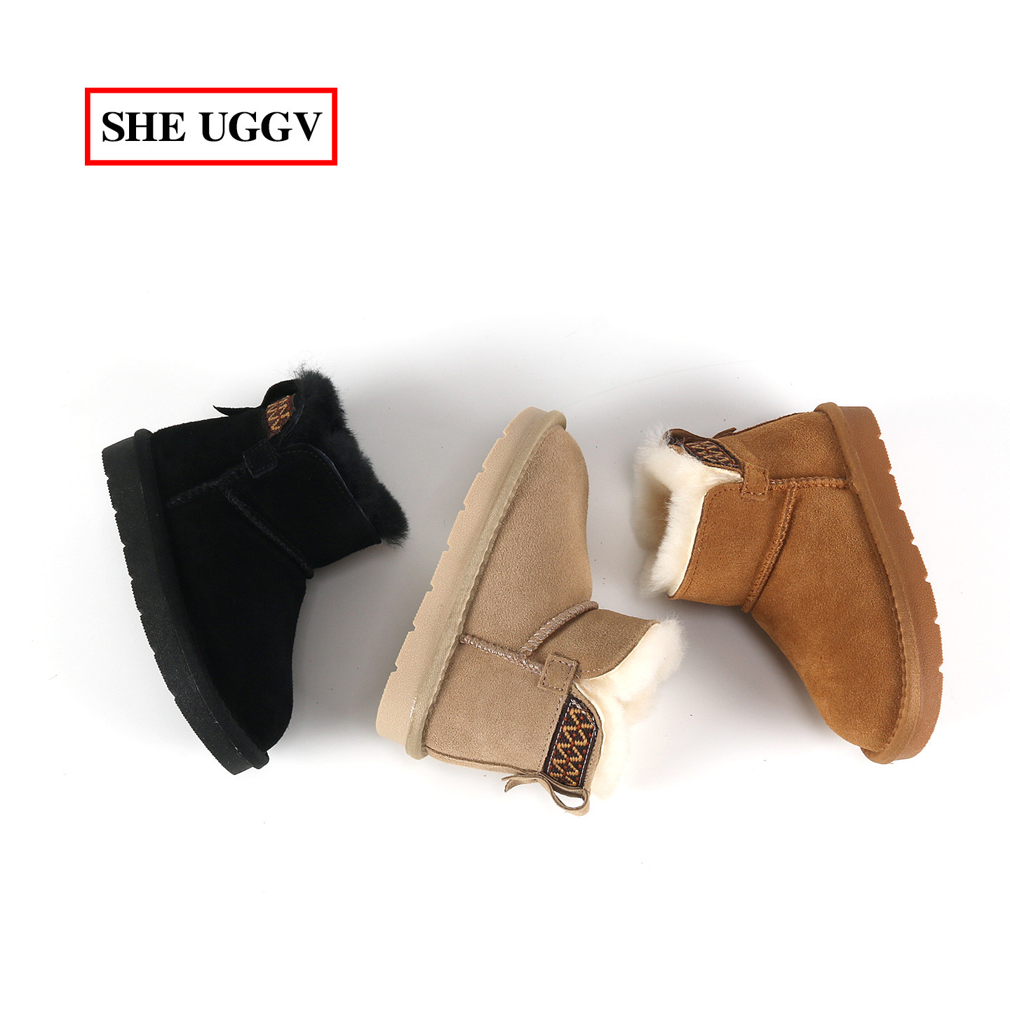 📚 新款民族风儿童羊皮毛一体雪地靴宝宝加绒保暖棉鞋女童真皮雪地棉