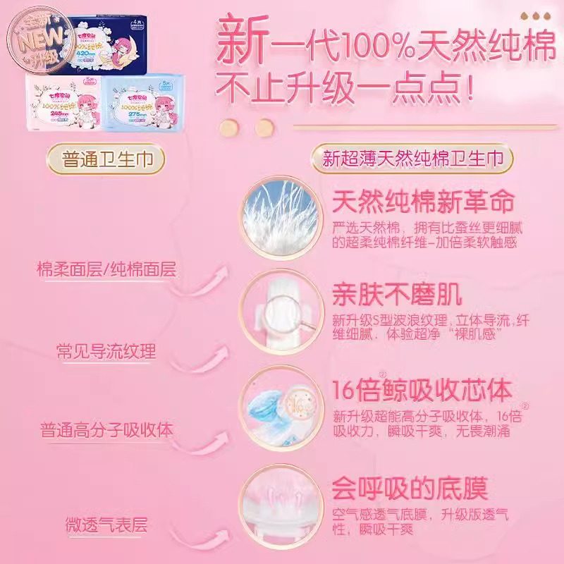 📚 七度空间卫生巾少女系列超薄日用夜用275mm50片姨妈巾官网正品