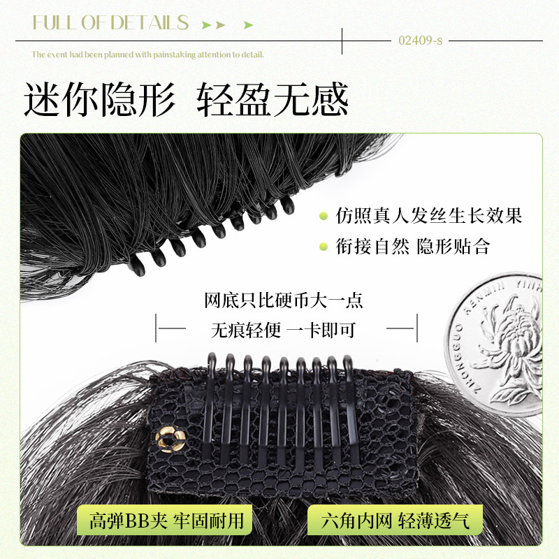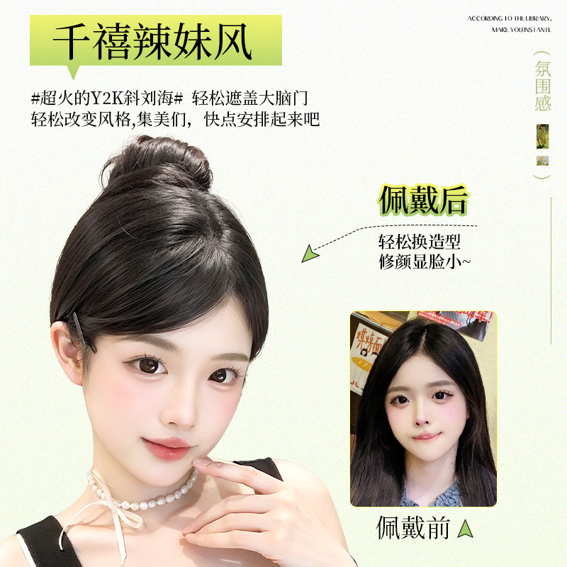 📚 刘海假发女片头顶全真发千禧古早斜刘海自然前额假刘海头顶假发片