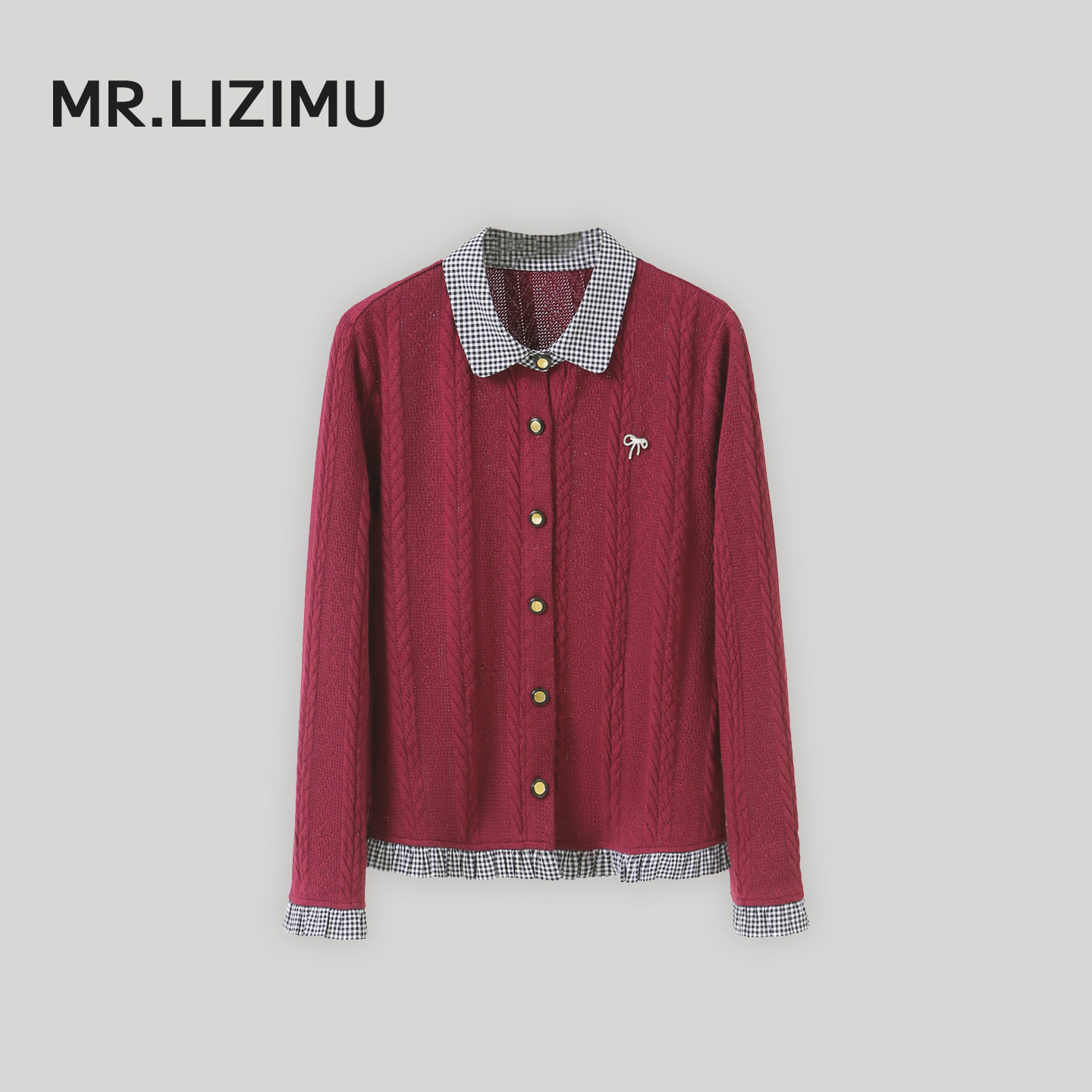 📚 李子木先生衬衣领拼接加厚毛衣开衫女2025冬季假两件收腰百搭上衣