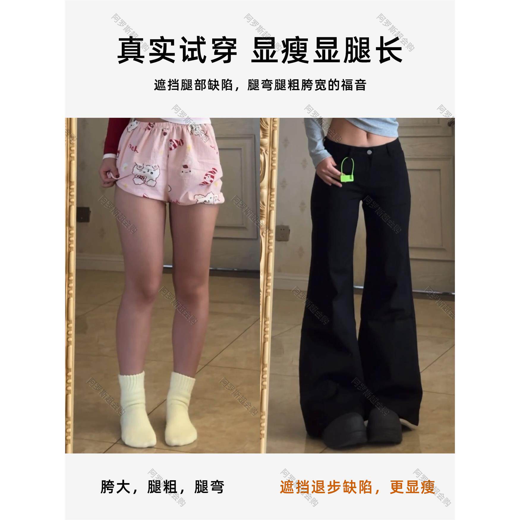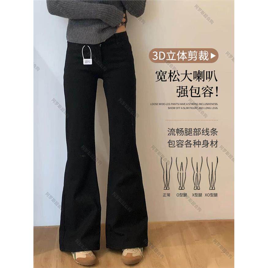 📚 黑色微喇牛仔裤女2025春秋新款低腰显瘦弹力宽松不贴腿喇叭拖地裤