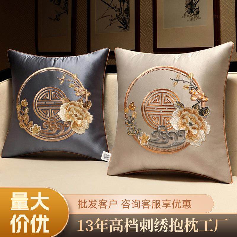 中刺抱枕靠垫客厅轻沙发奢大号护腰靠中国风靠式枕HXR绣含芯