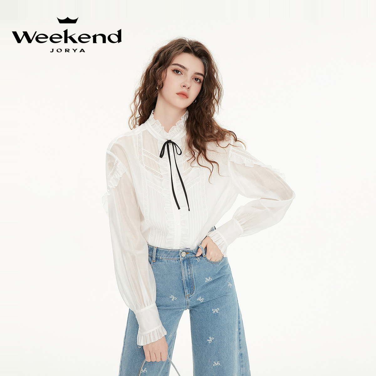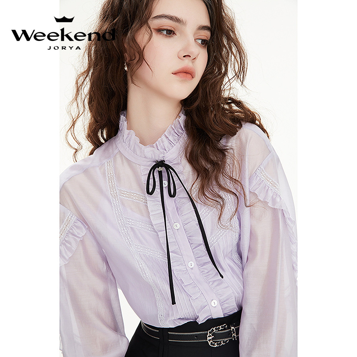 📚 卓雅周末25春季新款法式复古蕾丝立领荷叶边长袖雪纺衬衫R200605A