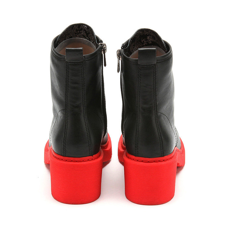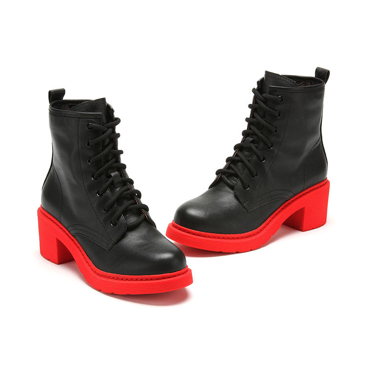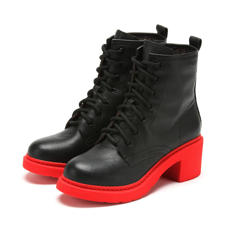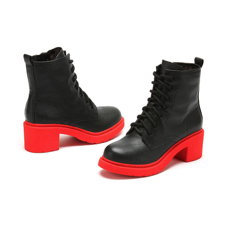 📚 小码真皮短靴子女冬牛皮马丁靴圆头中粗跟厚底水台绑带SF54117018
