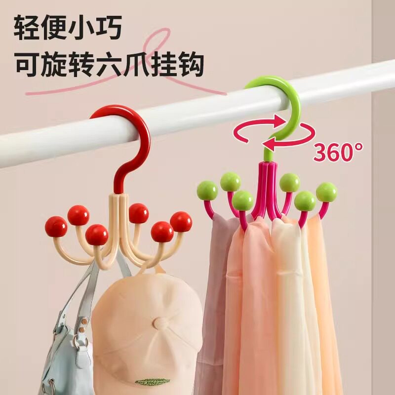 📚 六爪挂钩360度旋转衣柜挂包架多功能内衣架吊带包包衣帽收纳挂勾