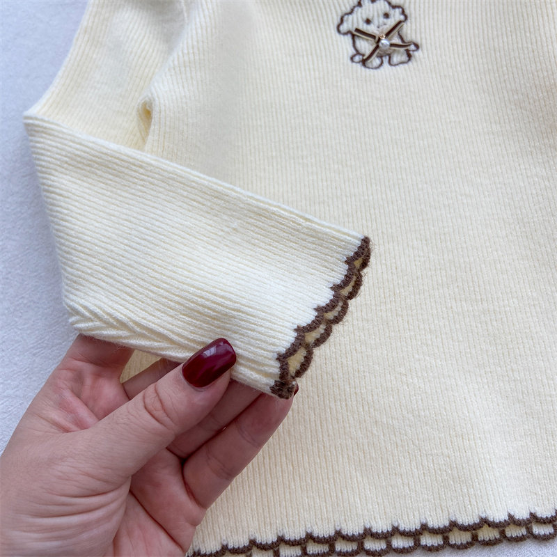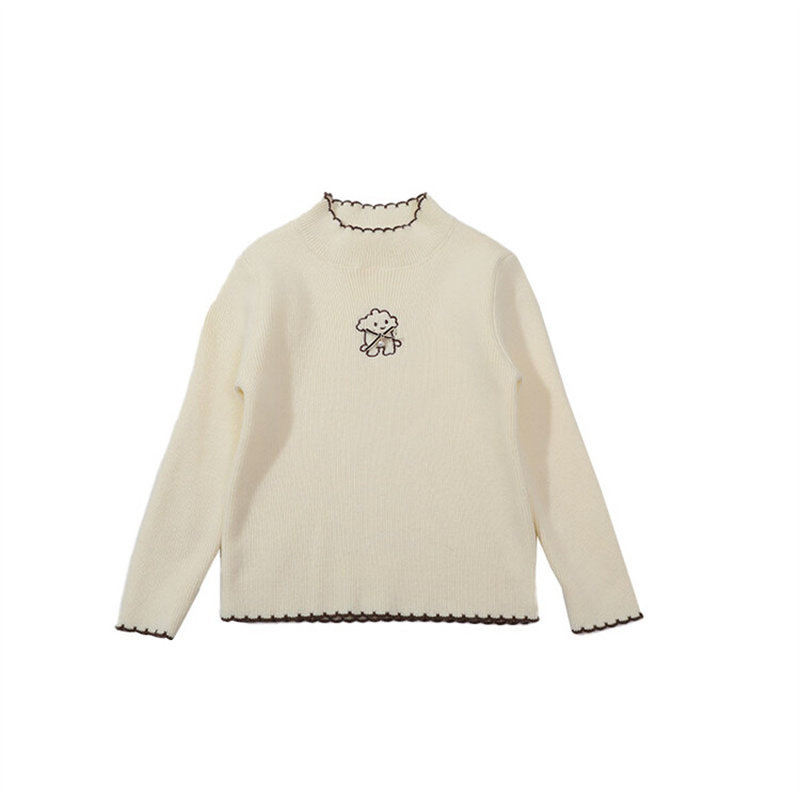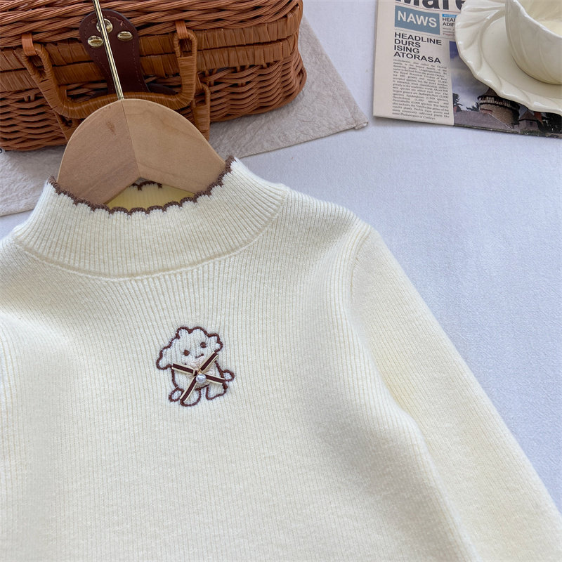 📚 女童毛衣秋冬洋气半高领针织衫内搭修身高弹力上衣白色黑色打底衫