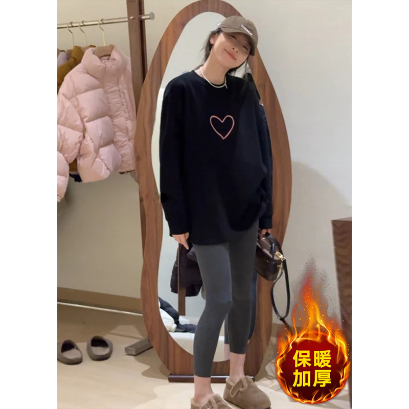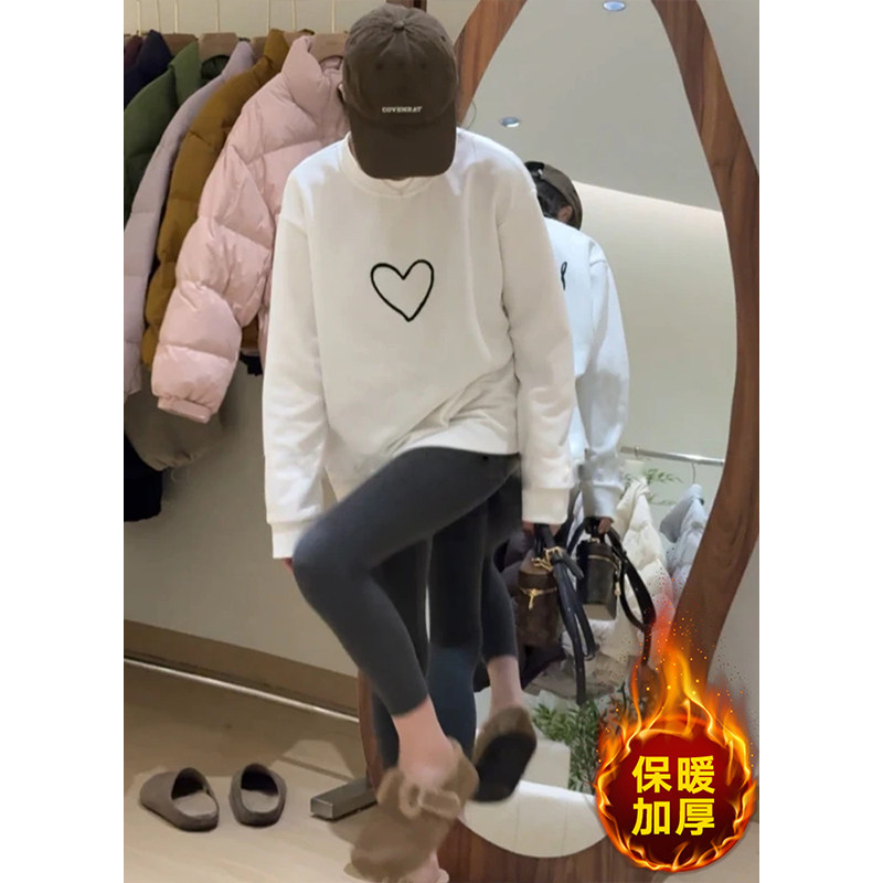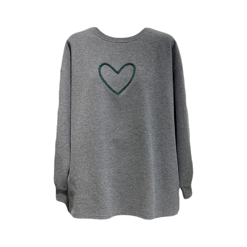📚 韩版简约重工爱心刺绣磨毛加厚T恤女秋冬时尚洋气打底衫休闲上衣