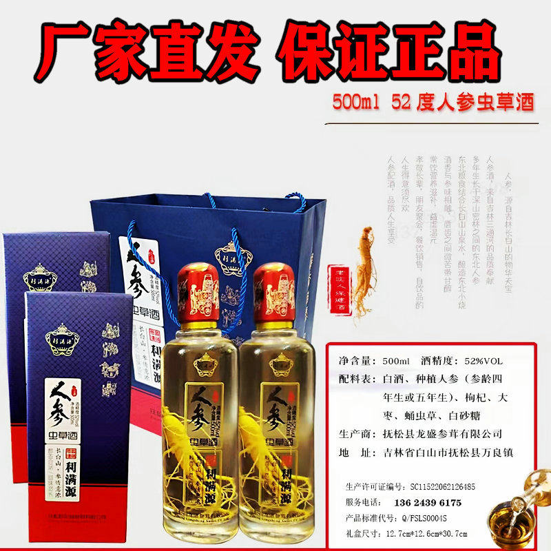 📚 人参枸杞酒52度 纯粮食酒人参虫草酒礼盒单瓶500ml红枣滋补养生酒