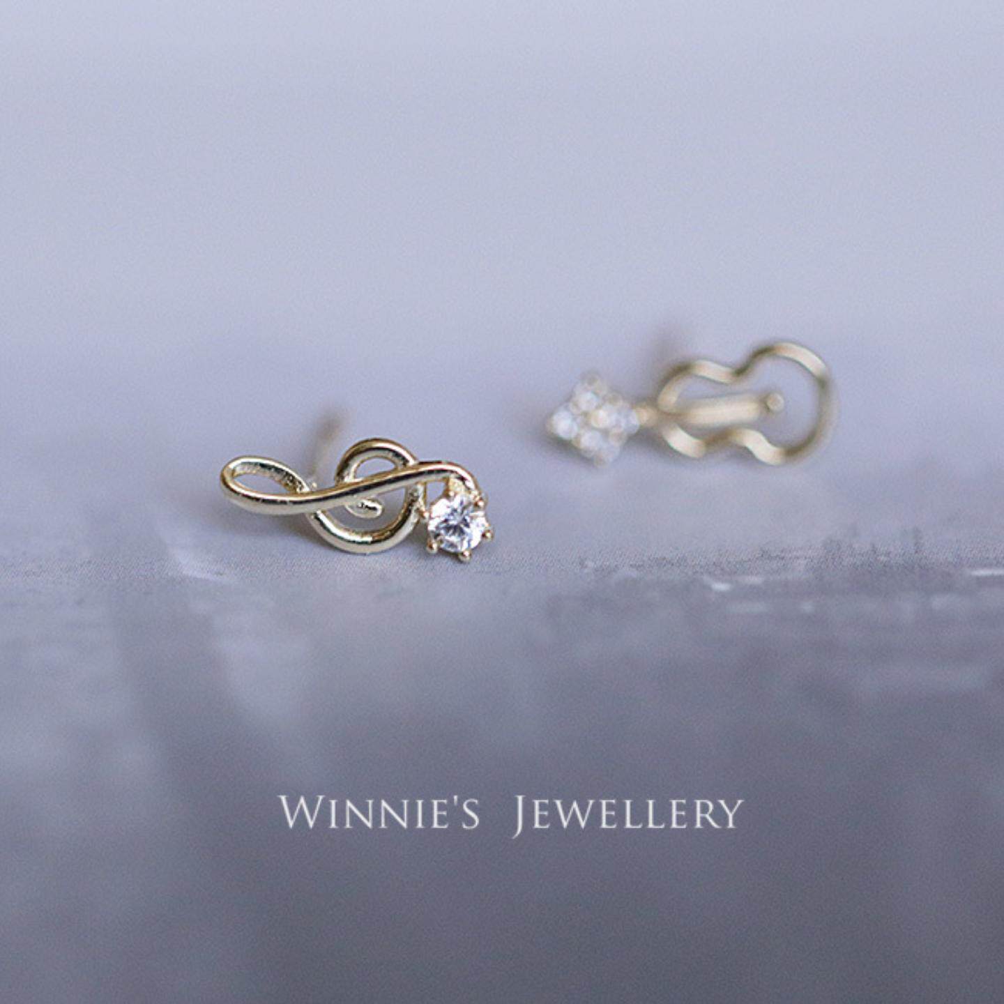 📚 日韩个性音符不对称耳钉女 通体S925银简约小巧百搭学生