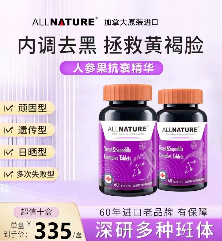 📚 安美奇北美进口顽固黑斑点去黑色素酵母人参果净颜复合片内调黄褐