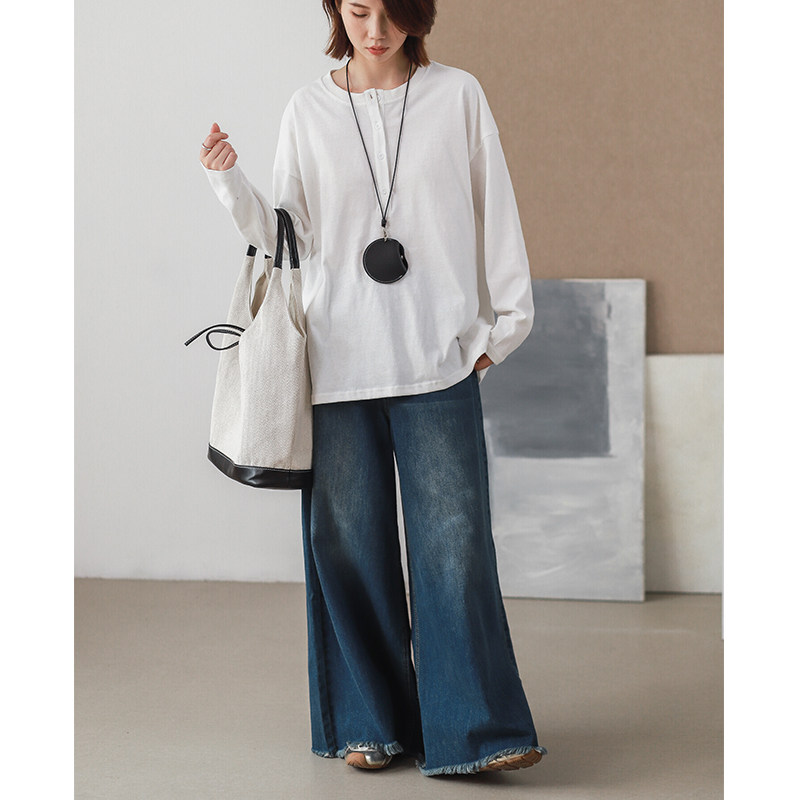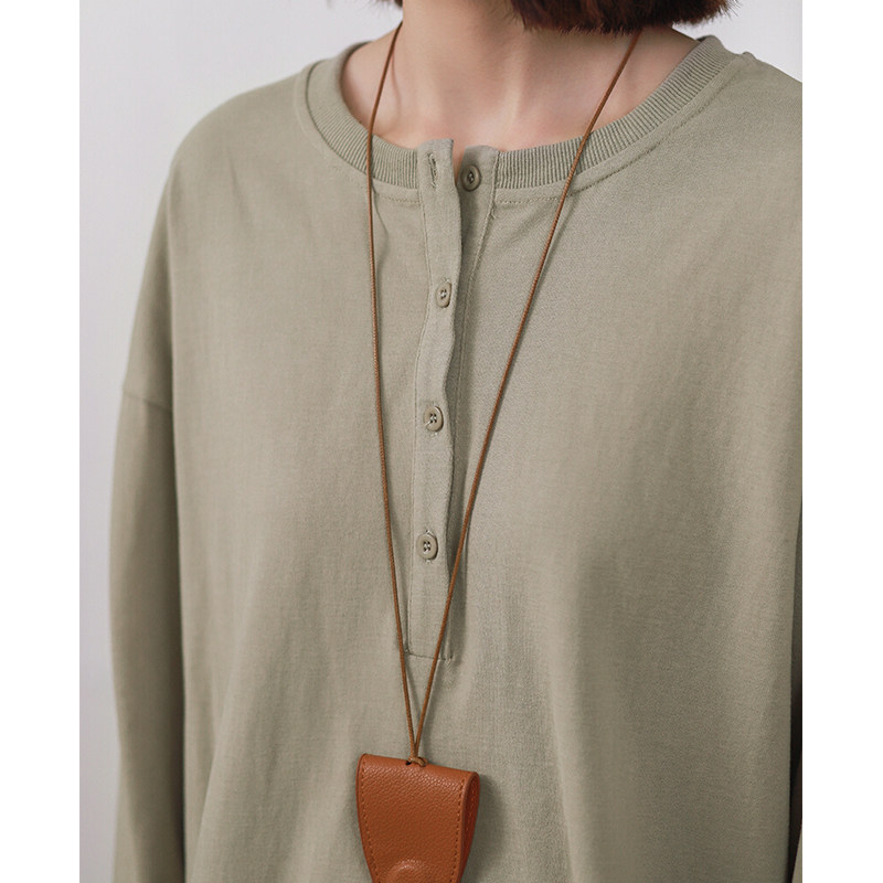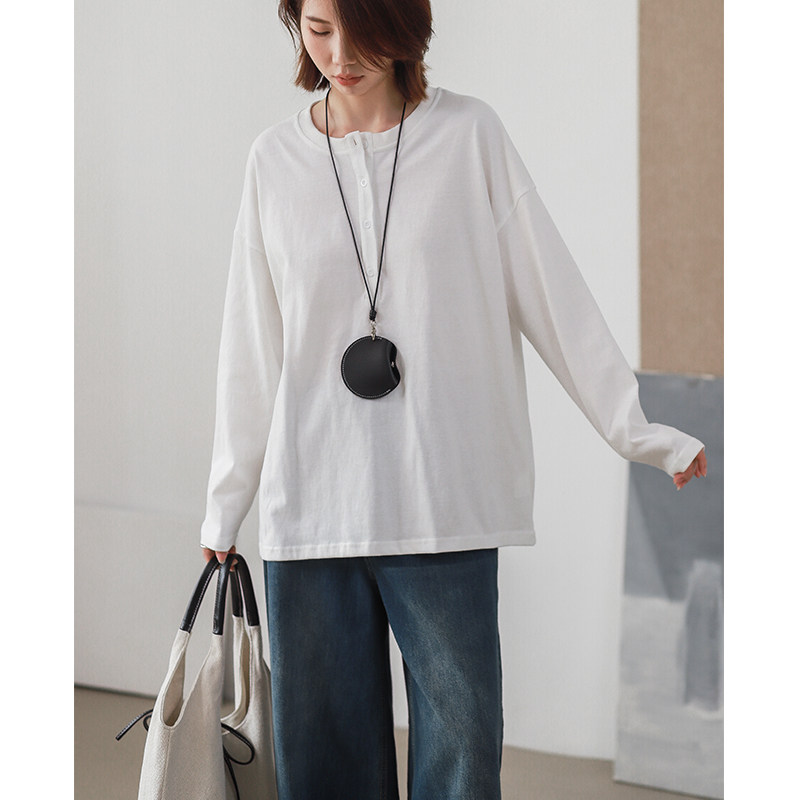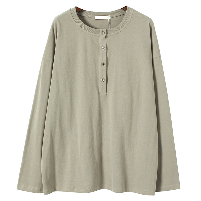 📚 菲尔丹 文艺排扣圆领长袖T恤 宽松版亲肤舒适秋冬打底中长T1386