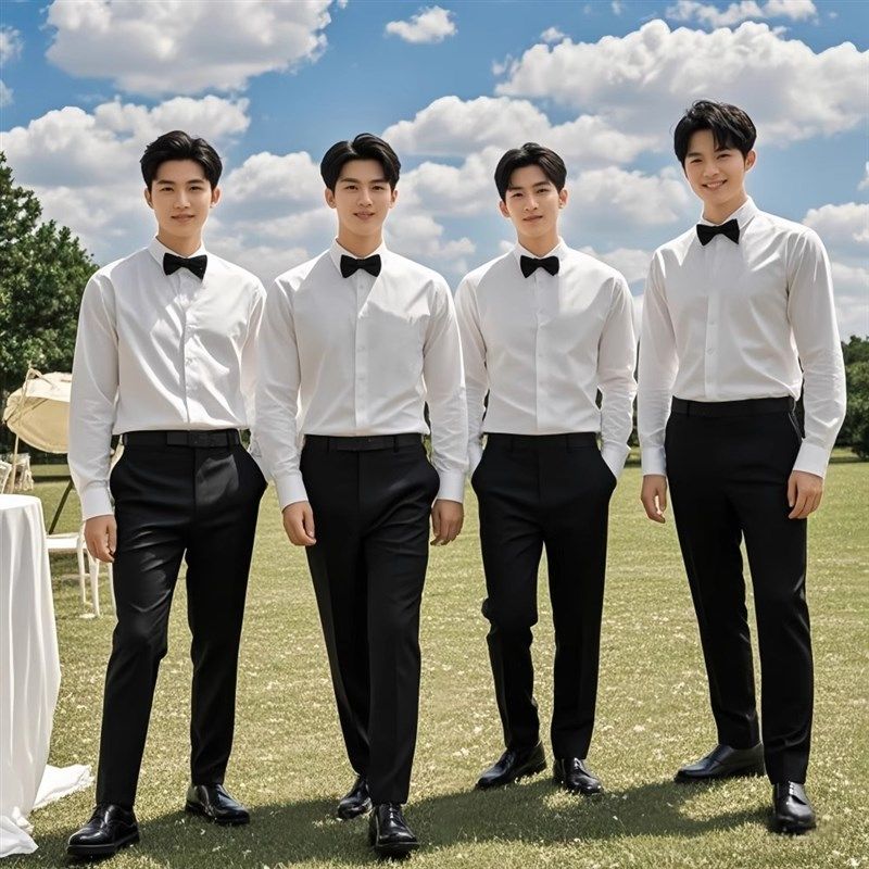 📚 欢喜橙【皓锦】白色长袖衬衫新郎订婚正装休闲大码衬衣男伴郎服