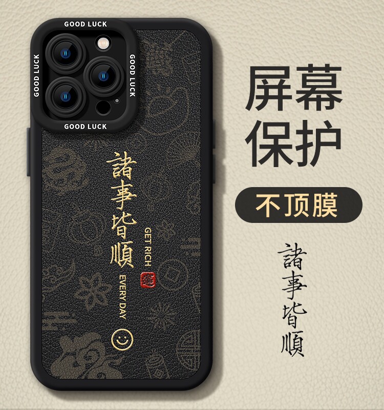 📚 苹果17手机壳蛇年iPhone16promax文字诸事皆顺15pro红色全包防摔14plus喜庆本命13pm皮质硅胶套12男女新款Air