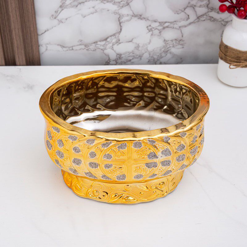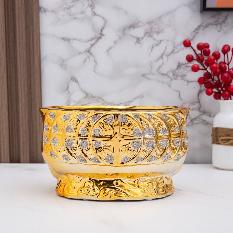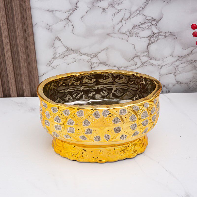 📚 欧式土豪金电镀金砂 财源滚滚 陶瓷多肉花盆摆设