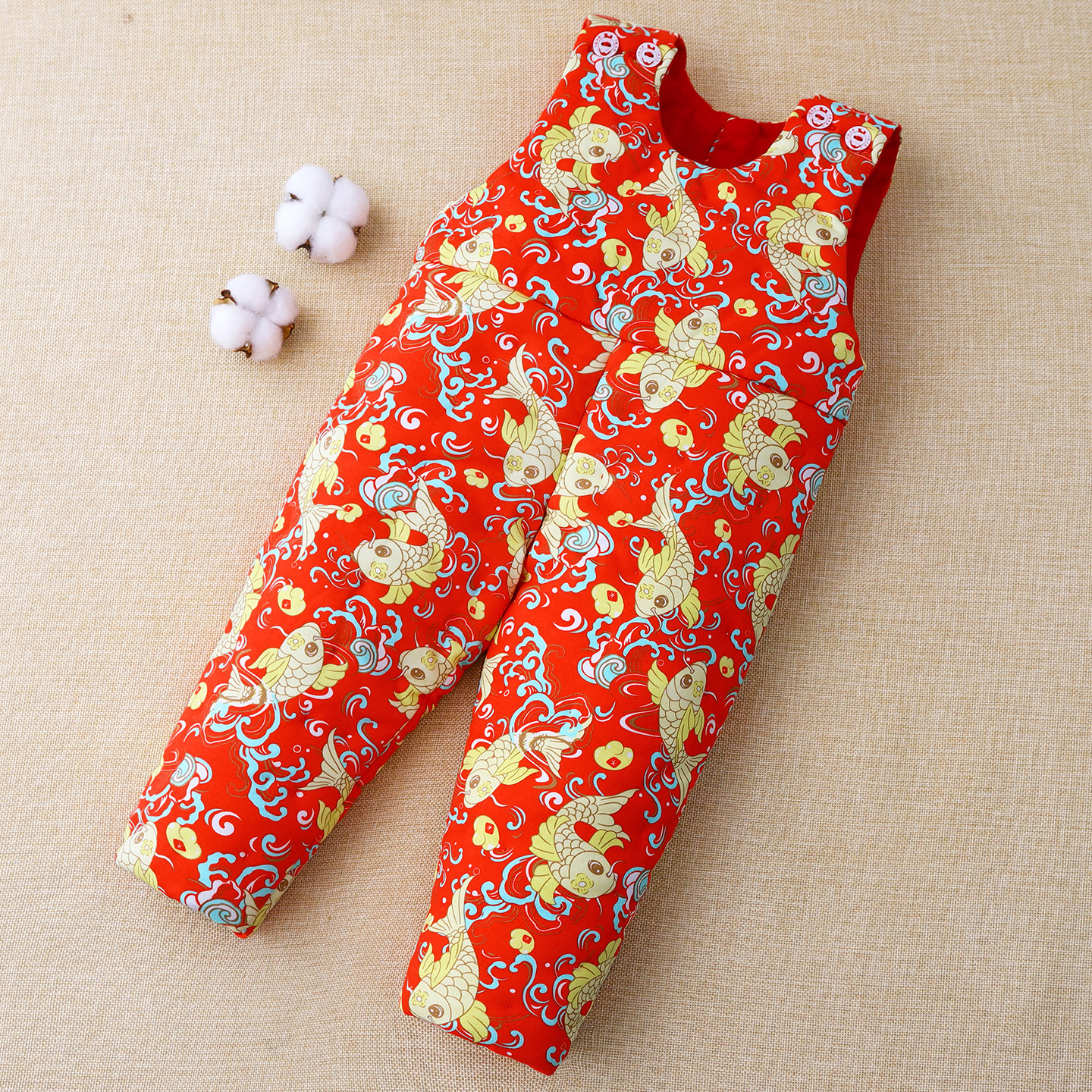 📚 纯棉花婴儿手工背带棉裤宝宝秋冬季加厚裤子男女儿童加棉保暖长裤