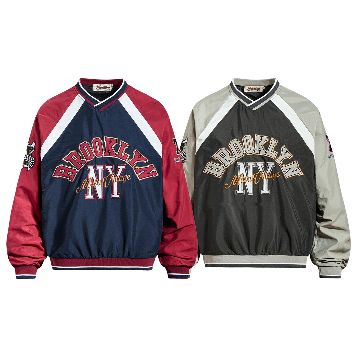📚 MoCreation 美式复古撞色V领卫衣女春季宽松字母刺绣情侣百搭长袖