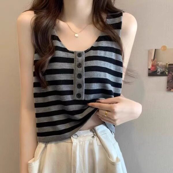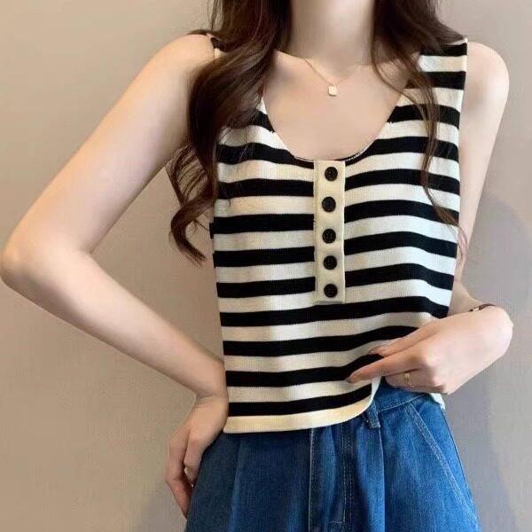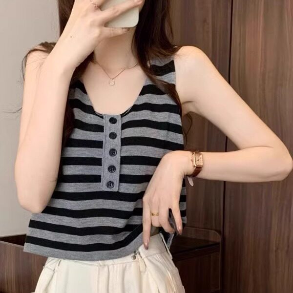 📚 2025新款夏季美式小众设计感条纹吊带背心修身显瘦百搭上衣女潮流
