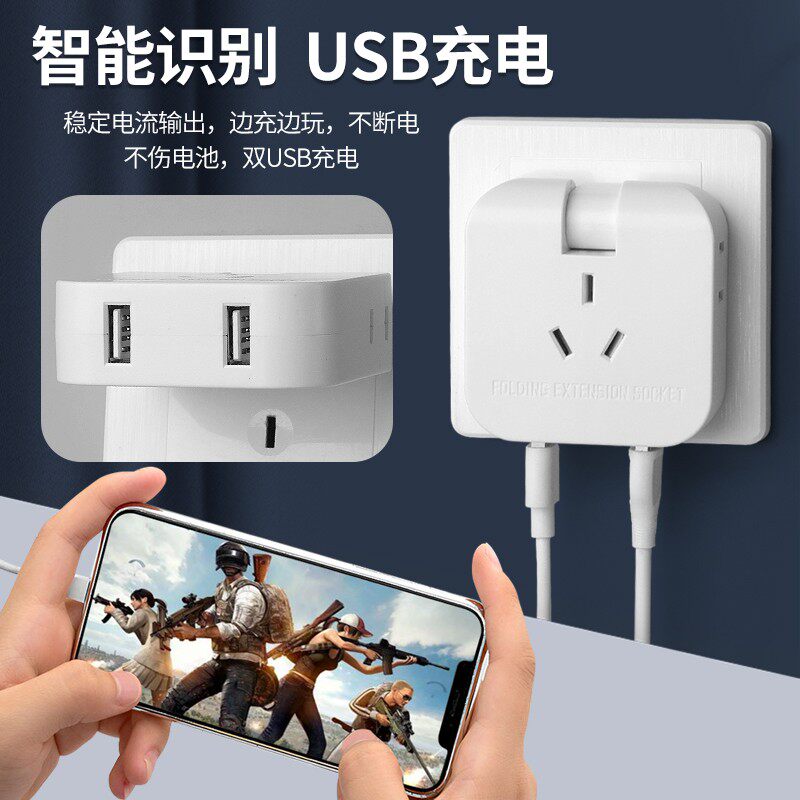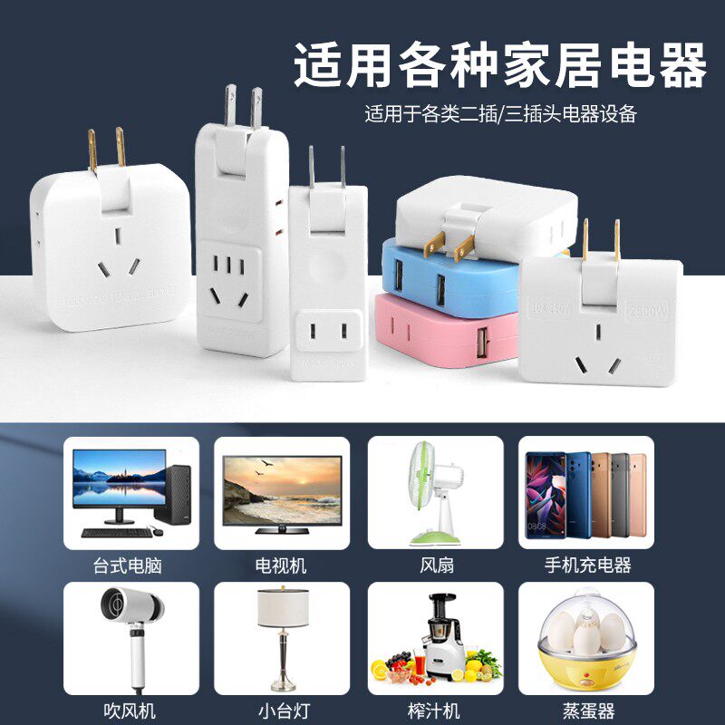 📚 超薄转换插头沙发后插座转换器靠墙缝隙旋转折叠插头扩展器一转三