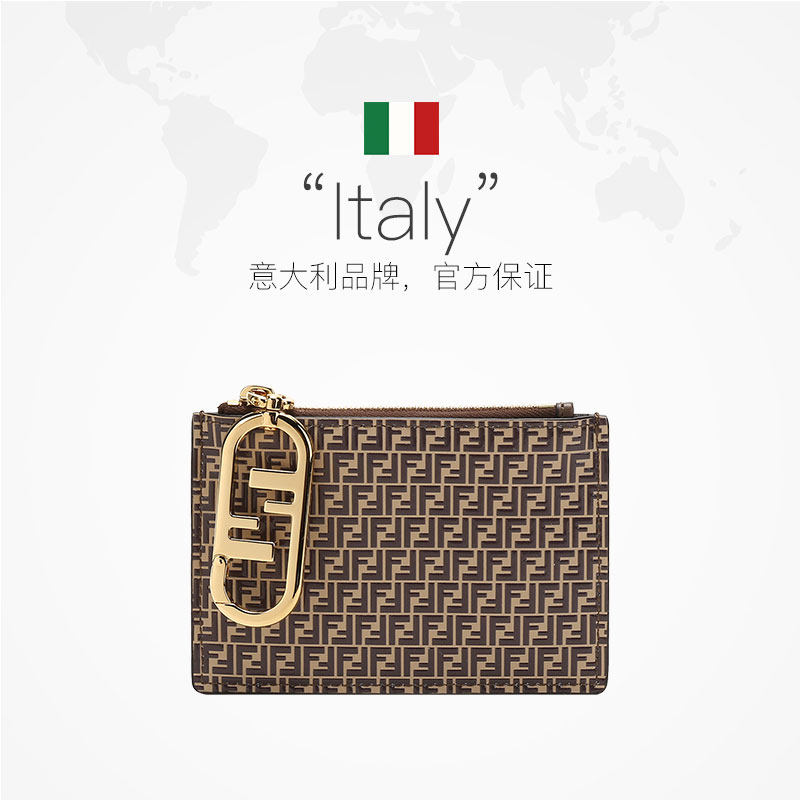 📚 【自营】Fendi芬迪 女士皮革卡包卡夹挂饰包 8N0183 AHM1棕色牛皮