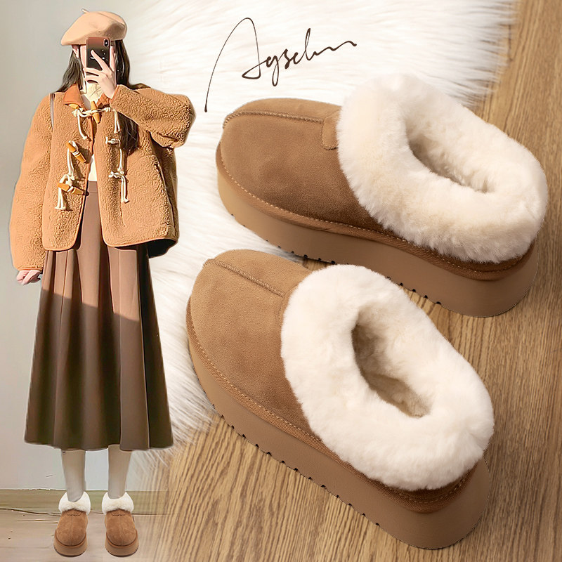 📚 加绒加厚雪地靴女2026新款夏季厚底一脚蹬棉鞋勃肯低帮短靴子真皮