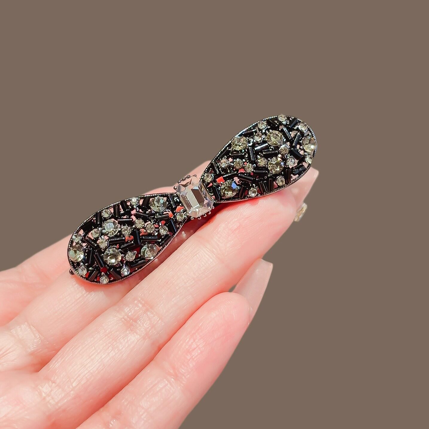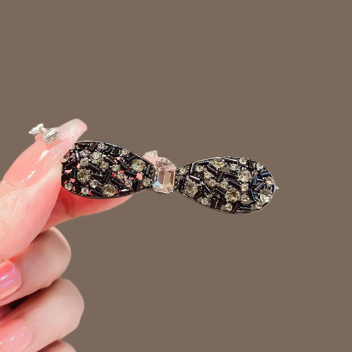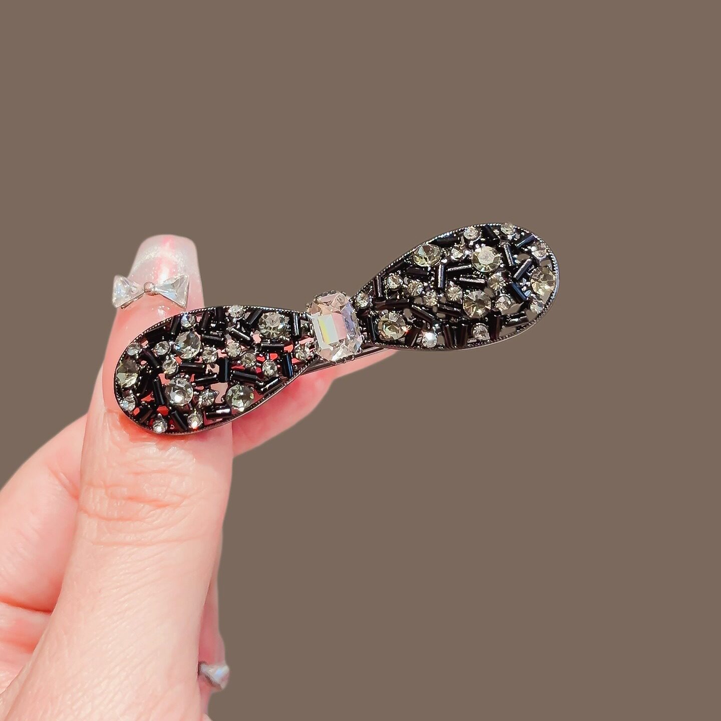 📚 水晶点缀黑色金属发夹女2025新款高级感侧边刘海夹碎发鸭嘴夹