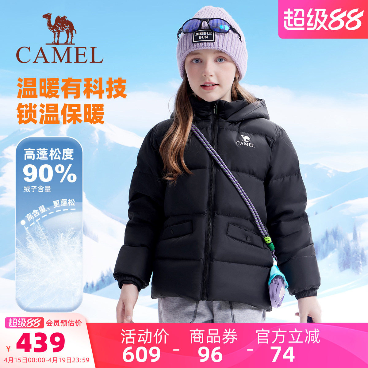📚 小骆驼儿童羽绒服轻薄款冬户外防风女童保暖面包服连帽男童外套潮