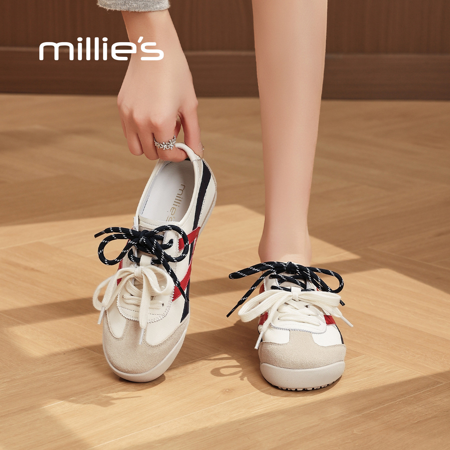 📚 MILLIE'S/妙丽复古风拼色德训鞋女款休闲运动鞋深口单鞋春季新款