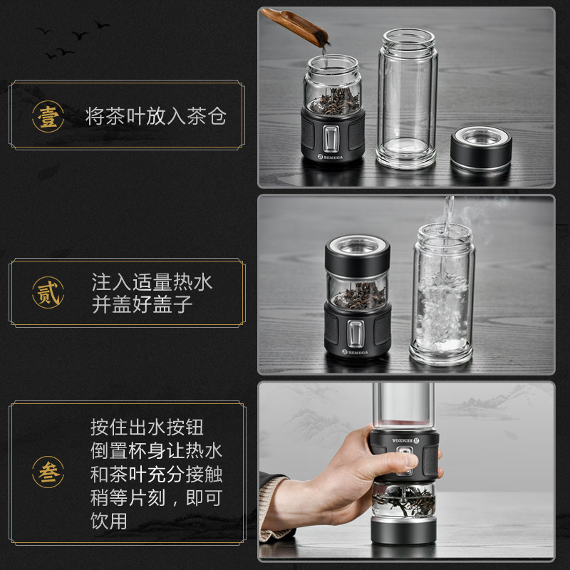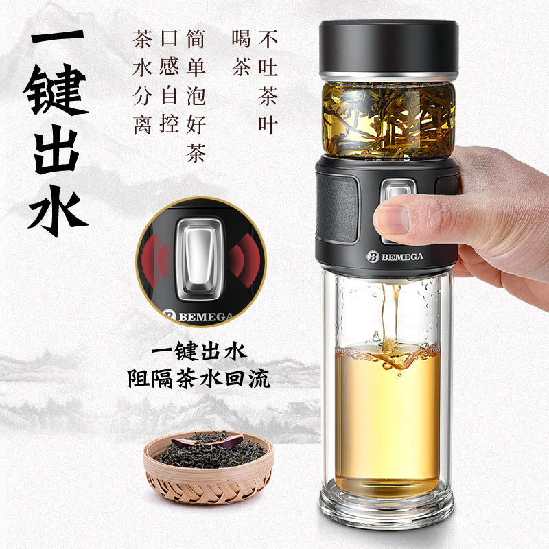 📚 英国Bemega茶水分离泡茶杯双层高硼硅玻璃杯男款大容量保温水杯子