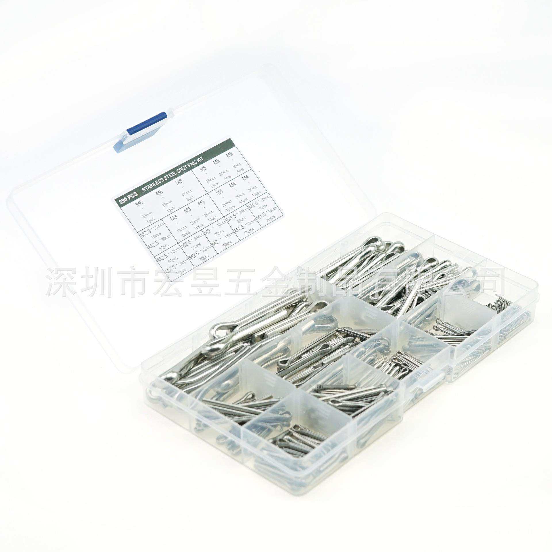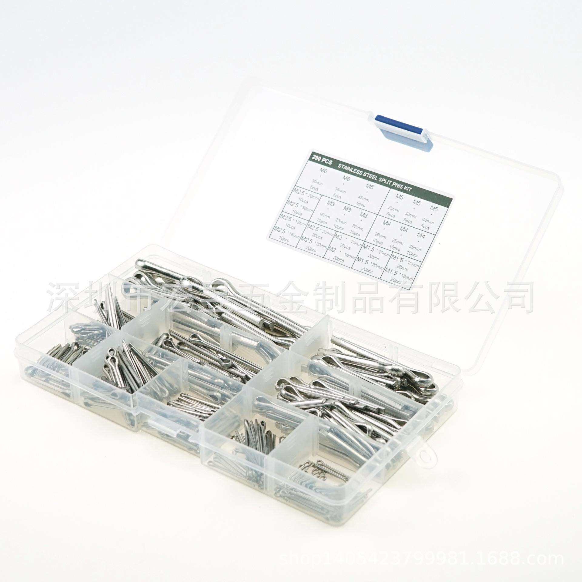 📚 290pcsM1.5M2M2.5M3M4M5M6不锈钢304GB91开口销组合套装盒装