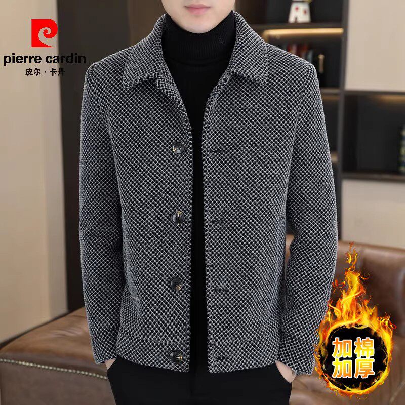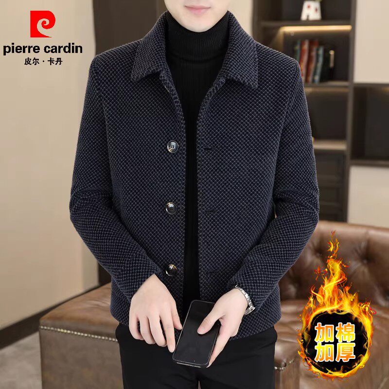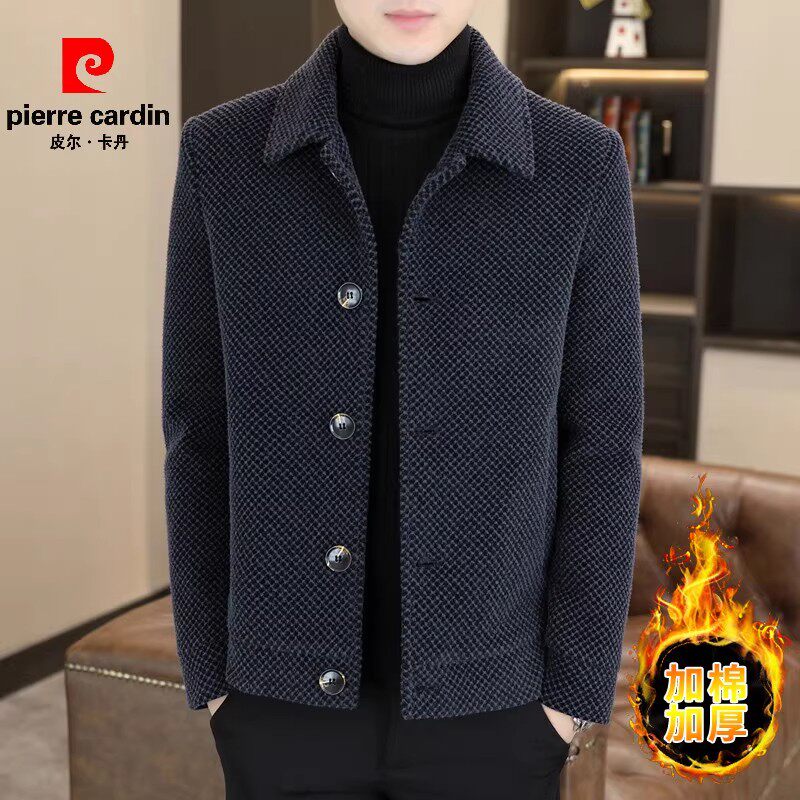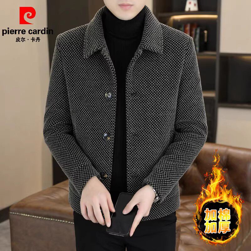 📚 皮尔卡丹金貂绒外套男士秋冬季翻领修身加厚青年毛呢冬装商务夹克