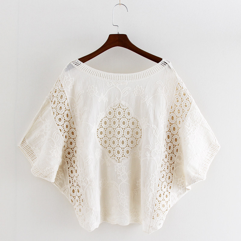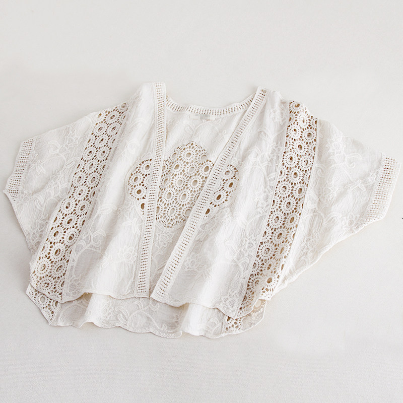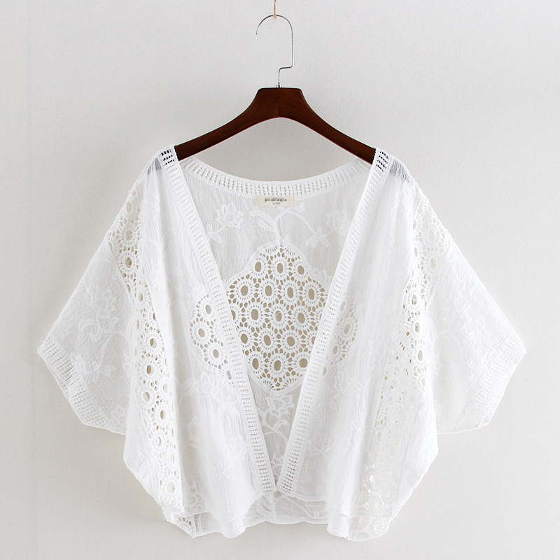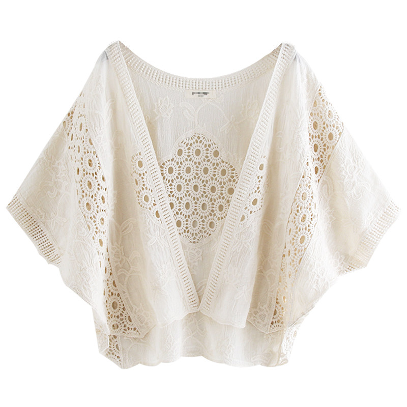 📚 春夏披肩女蕾丝衫度假防晒衣镂空薄款上衣纯棉短款蝙蝠袖开衫外套