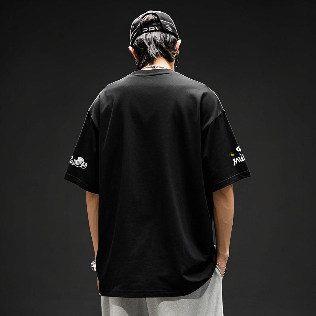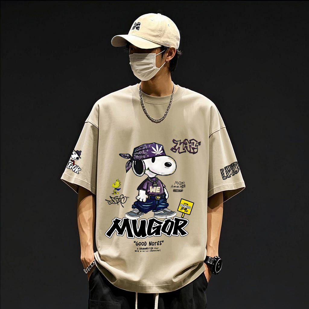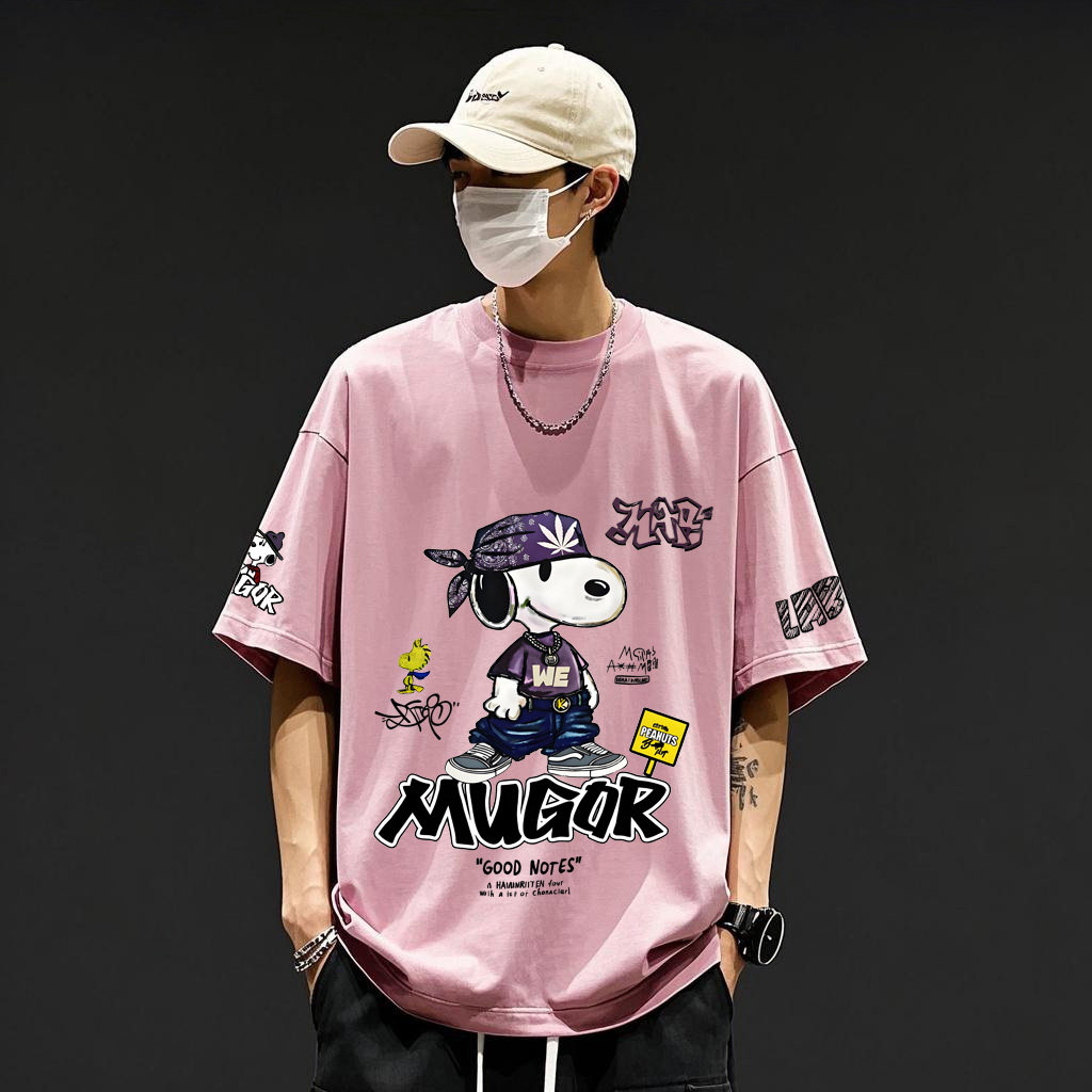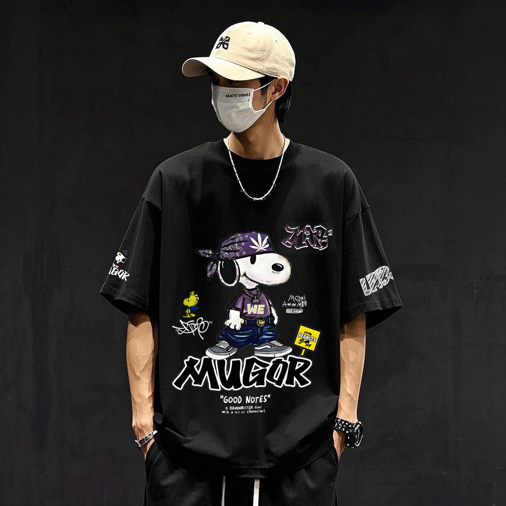 📚 2025新款美式卡通史努比涂鸦数码白墨直喷印花纯棉短袖T恤男生夏