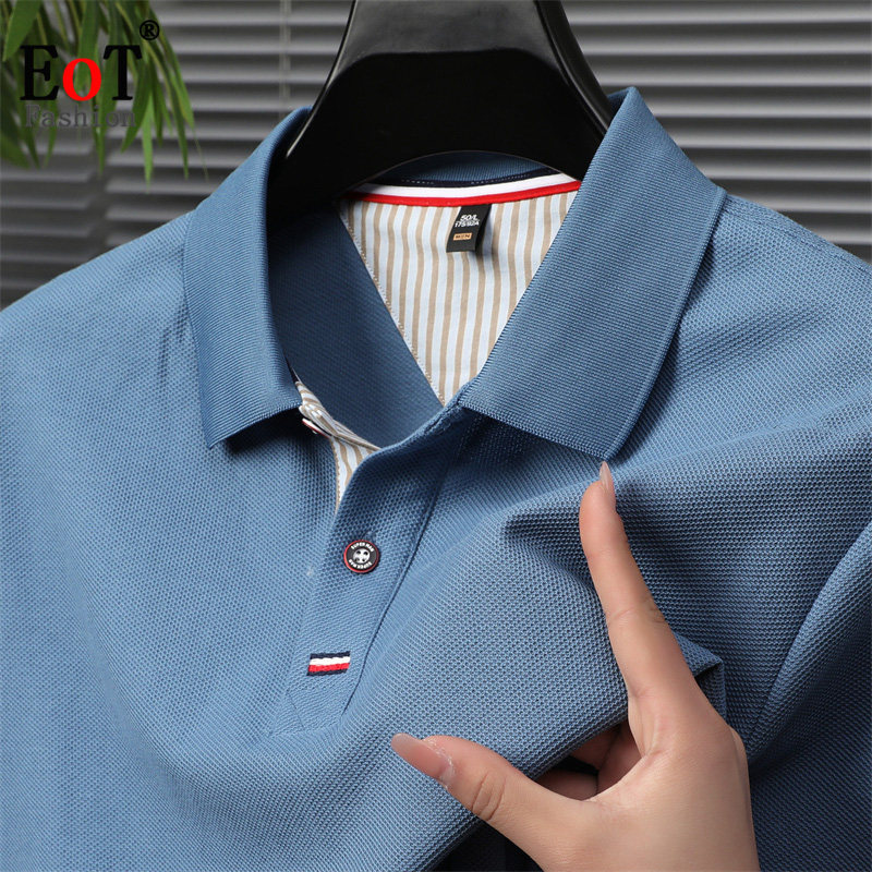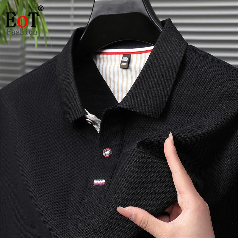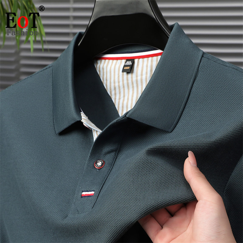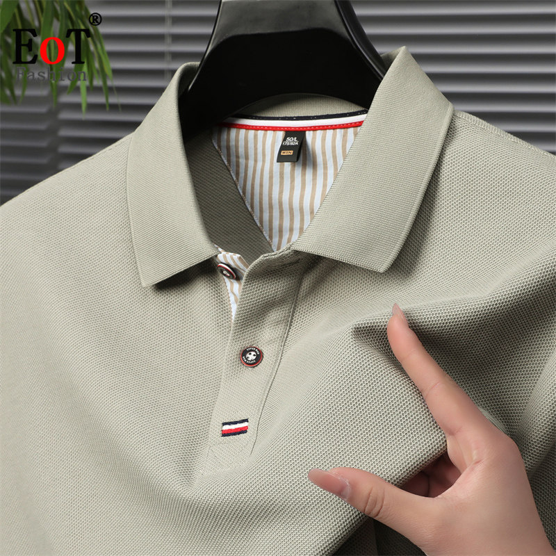 📚 夏季100%纯棉短袖T恤翻领休闲纯色polo衫中年男士全棉半袖体恤衫