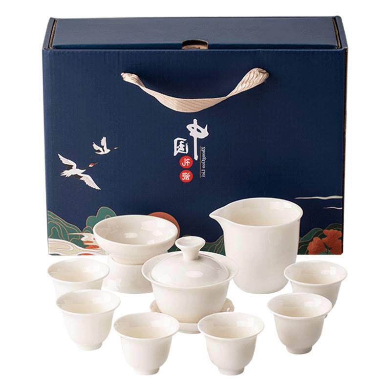 📚 Sheepskin white porcelain gift kung fu bowl complete set of