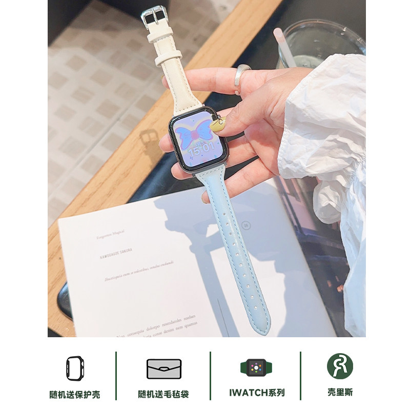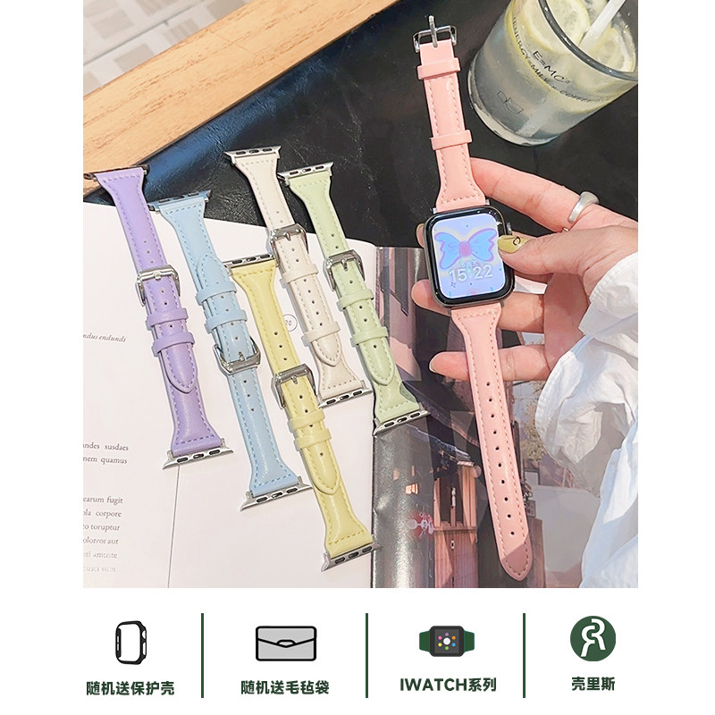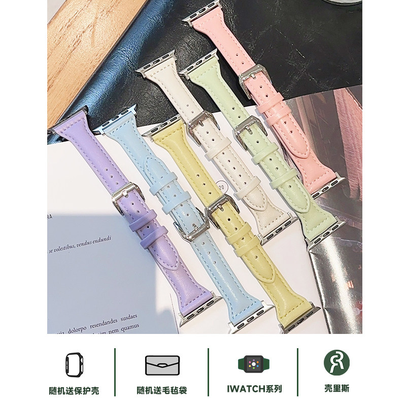 📚 壳里斯iwatch表带马卡龙拼色皮革S10小众新款s9适用SE2苹果Applewatch手表S5腕带S8高级感S6女款S7/Ultra表链