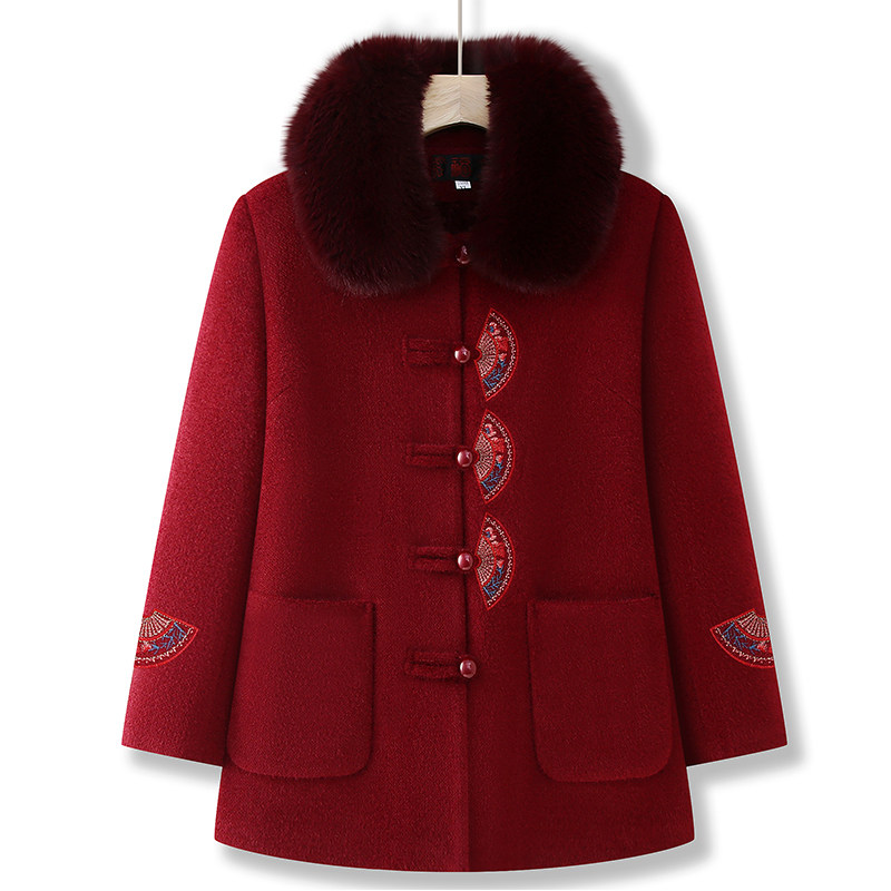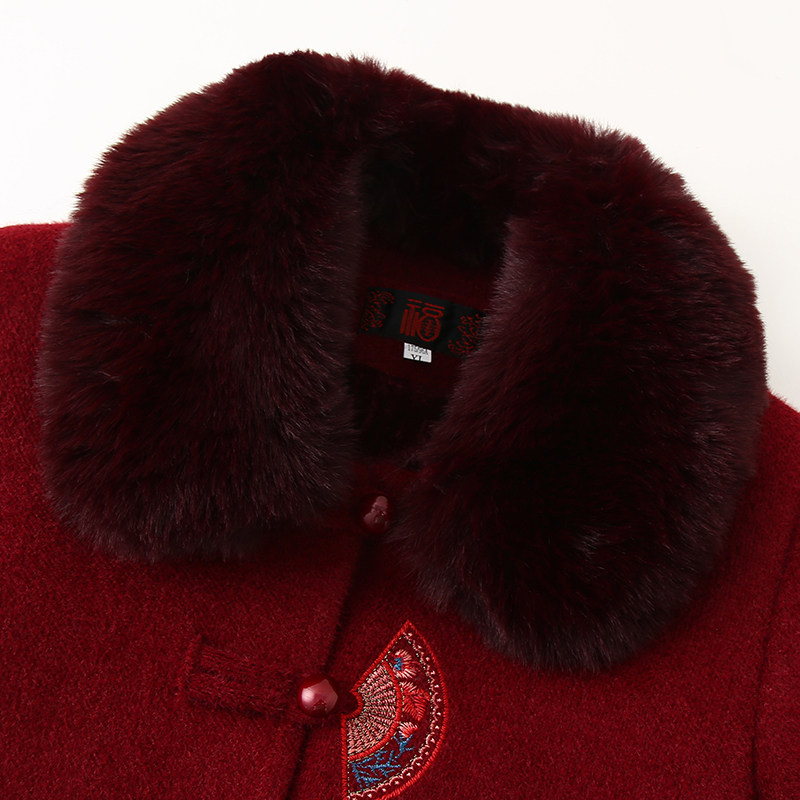 📚 中老年人秋冬外套女奶奶仿貂绒大衣加绒加厚妈妈冬装老人刺绣唐装