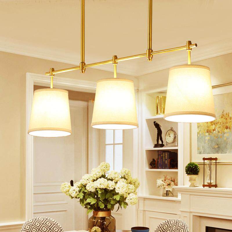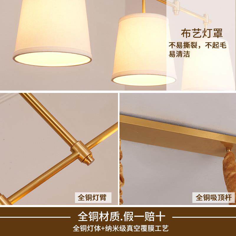 📚 新款直销餐厅吊灯美式简约北欧现代饭厅餐桌吧台三头创意布艺全铜