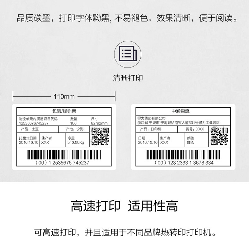 📚 得力81505增强蜡基碳带热转印标签打印机110mm×70m色带888TW耗材