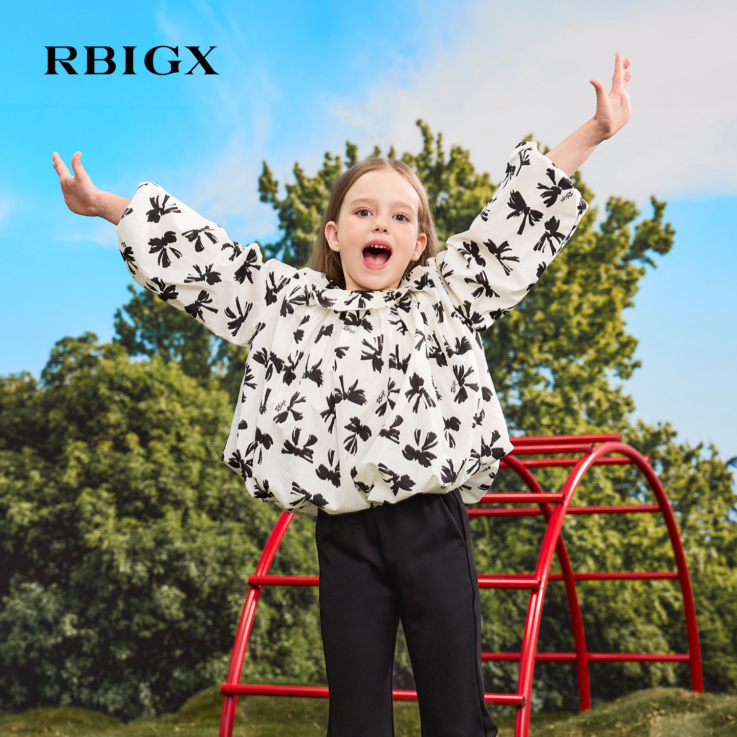 📚 RBIGX瑞比克童装秋季新款花朵印花纯棉甜美百搭长袖上衣小衫