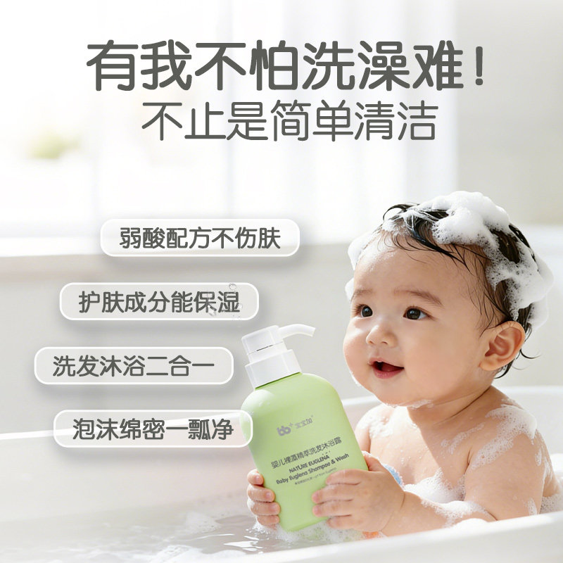 📚 宝宝加婴儿裸藻洗发水沐浴露二合一新生儿专用低泡易清洗儿童洗澡