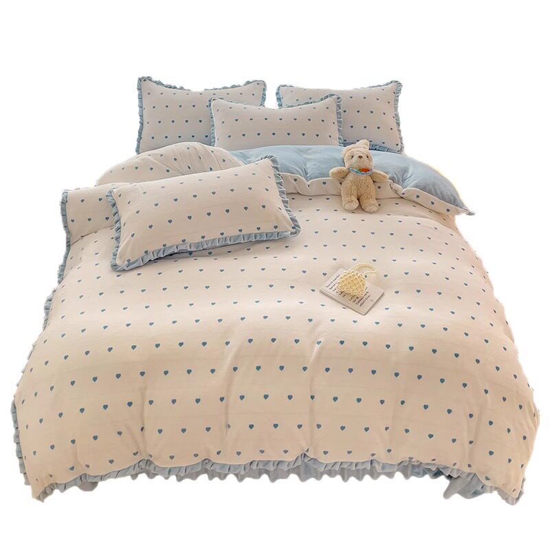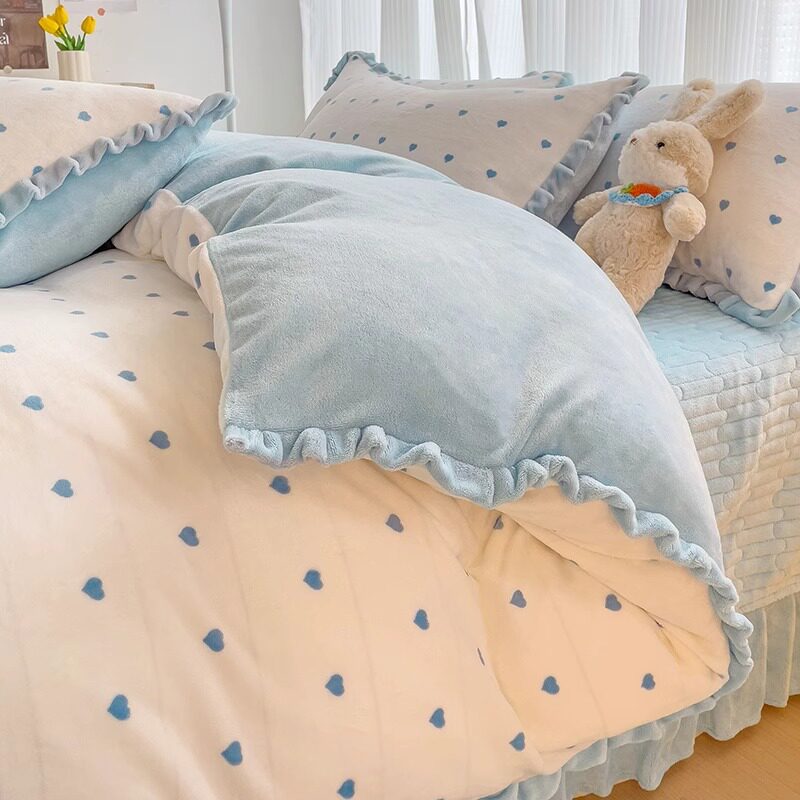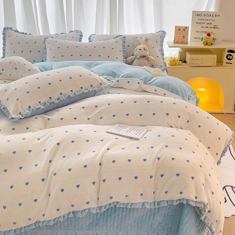 📚 公主风韩版牛奶绒床上四件套冬季珊瑚绒被套加绒床单床盖速热保暖