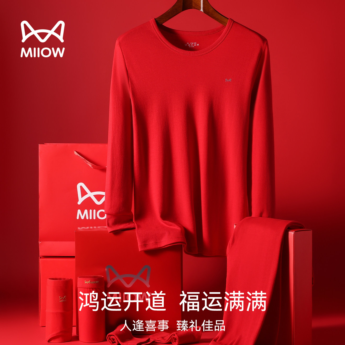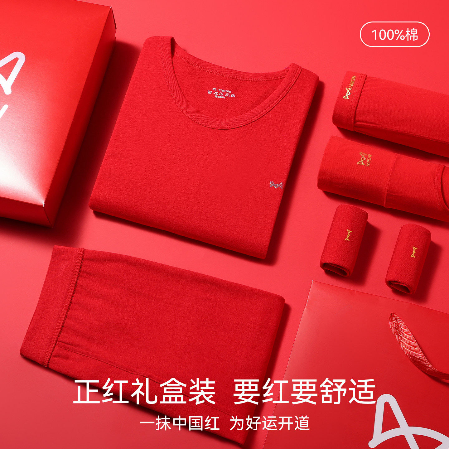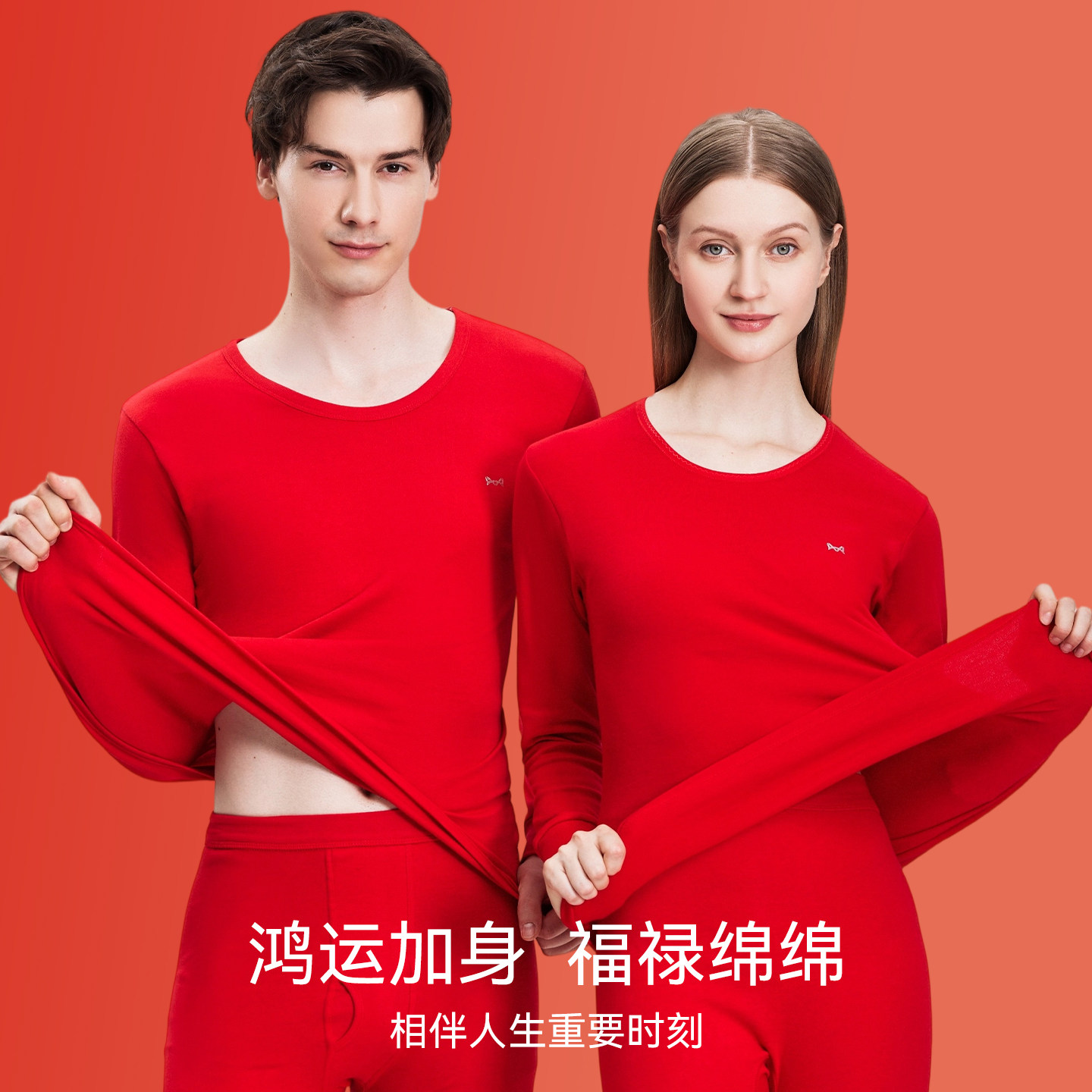 📚 猫人红色男女士秋衣秋裤套装全纯棉结婚薄款保暖内衣本命年棉毛衫