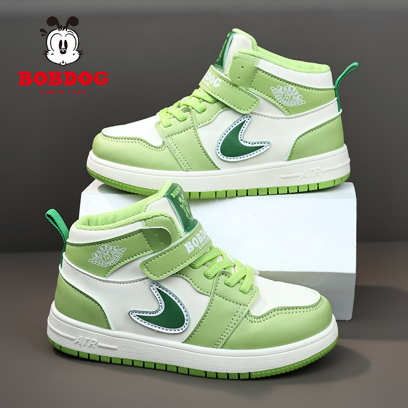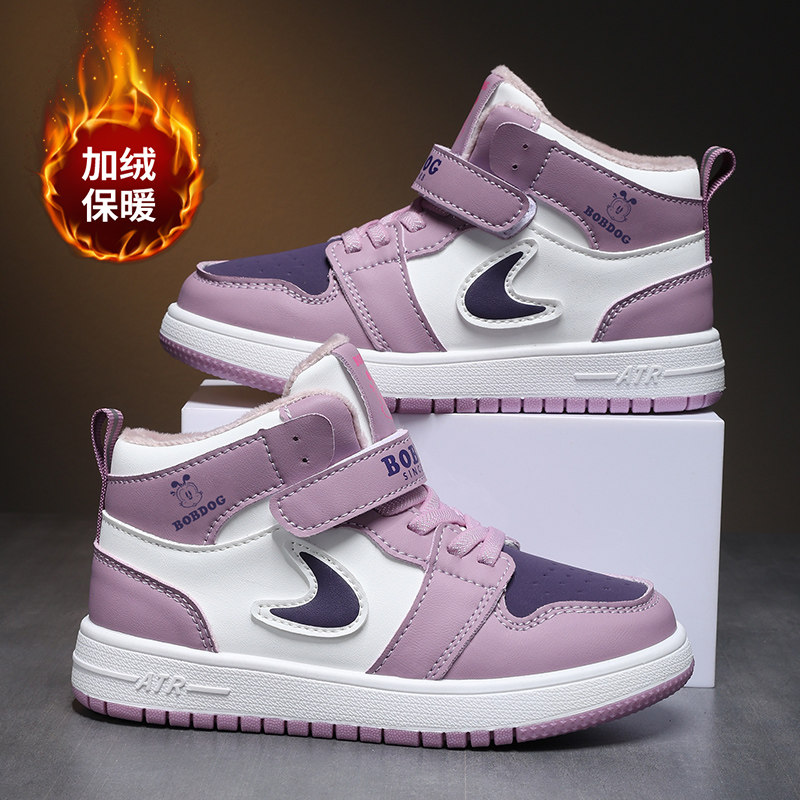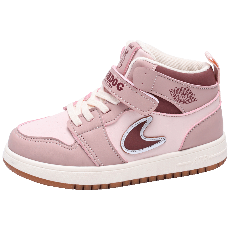 📚 巴布豆女童运动鞋2026新春秋季皮面防水高帮儿童时尚防滑女孩板鞋