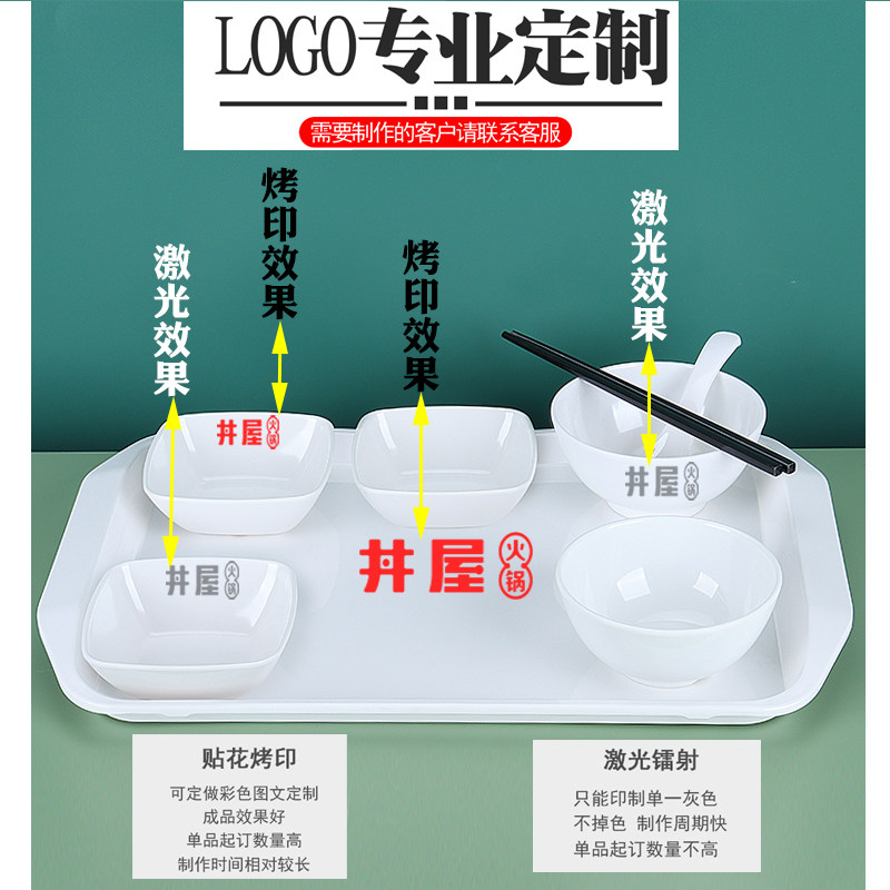 📚 A8密胺仿瓷长方形白色学校工厂公司食堂上菜端菜烤串托盘餐具商用